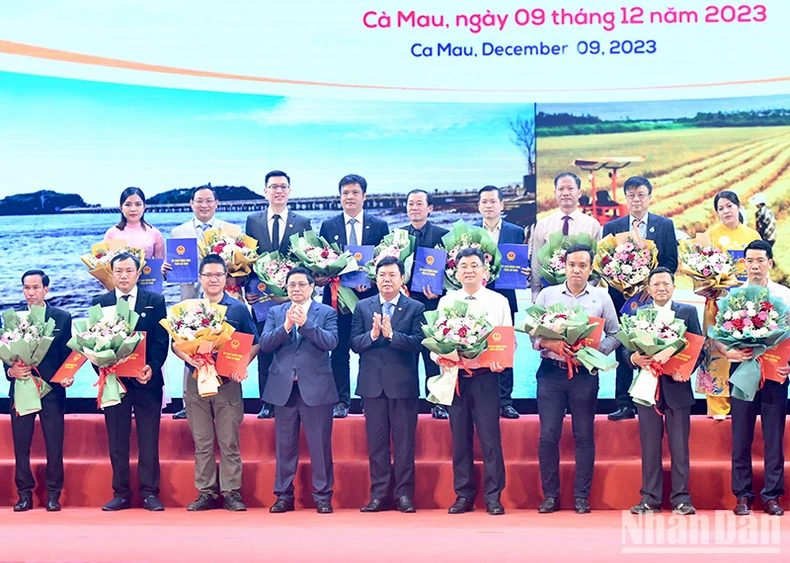 Nhân dịp này, trước sự chứng kiến của Thủ tướng Phạm Minh Chính, tỉnh Cà Mau đã trao quyết định giấy chứng nhận đăng ký đầu tư và chủ trương đầu tư cho các doanh nghiệp trong nước và nước ngoài đầu tư trên địa bàn tỉnh.