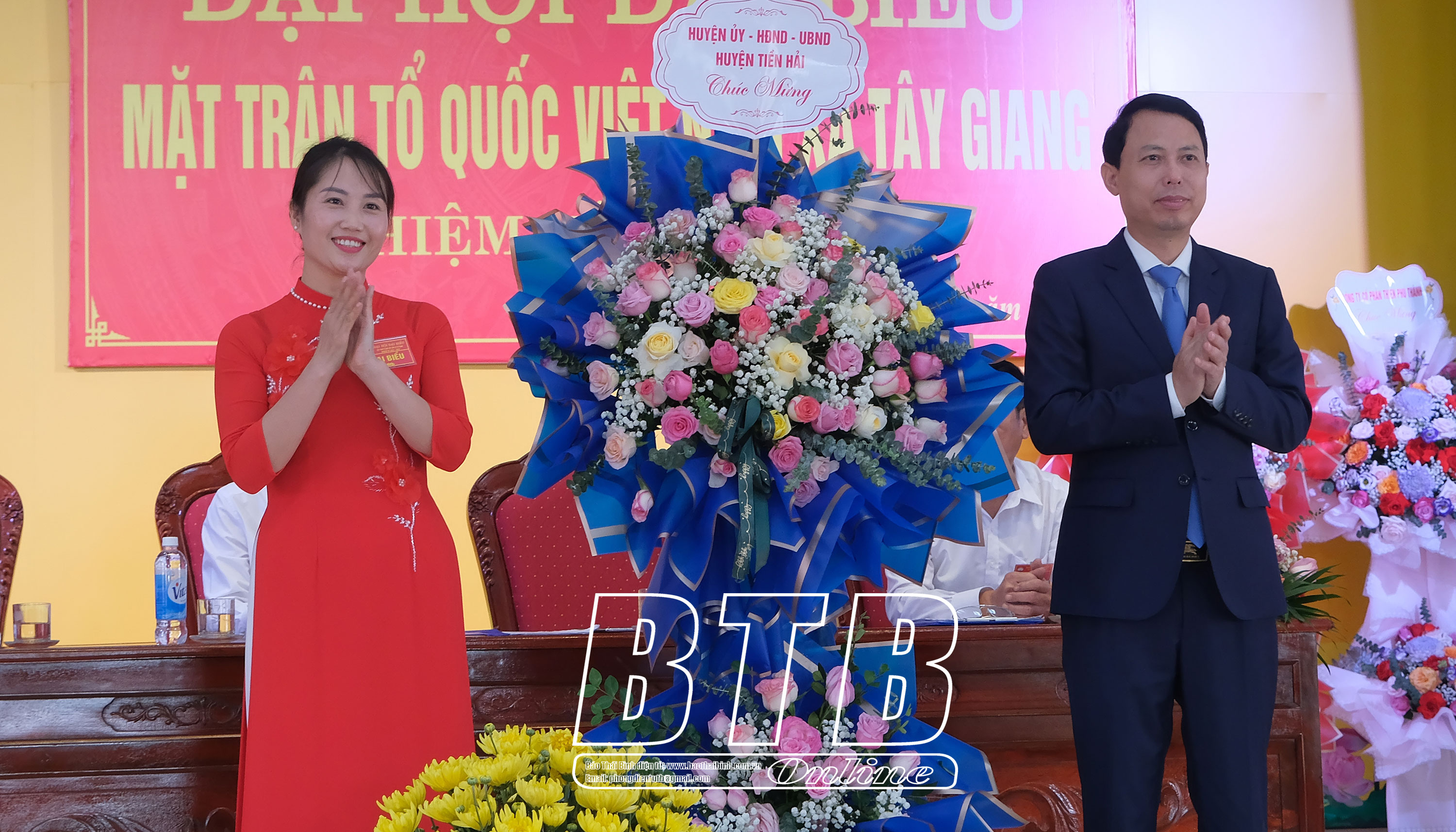 Lãnh đạo huyện Tiền Hải tặng hoa chúc mừng Đại hội.