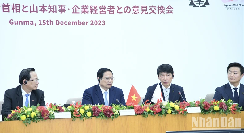 Chiều 15/12, trong chương trình hoạt động song phương tại Nhật Bản, Thủ tướng Phạm Minh Chính gặp Thống đốc tỉnh Gunma Yamamoto Ichita; dự toạ đàm với Thống đốc và các doanh nghiệp tiêu biểu của tỉnh Gunma; chứng kiến lễ ký bản ghi nhớ hợp tác giữa tỉnh Gunma và tỉnh Hà Nam; thăm Khu giao lưu người dân tỉnh Gunma - nơi người dân giao tiếp với chính quyền và nêu các ý kiến, đề xuất, kiến nghị.