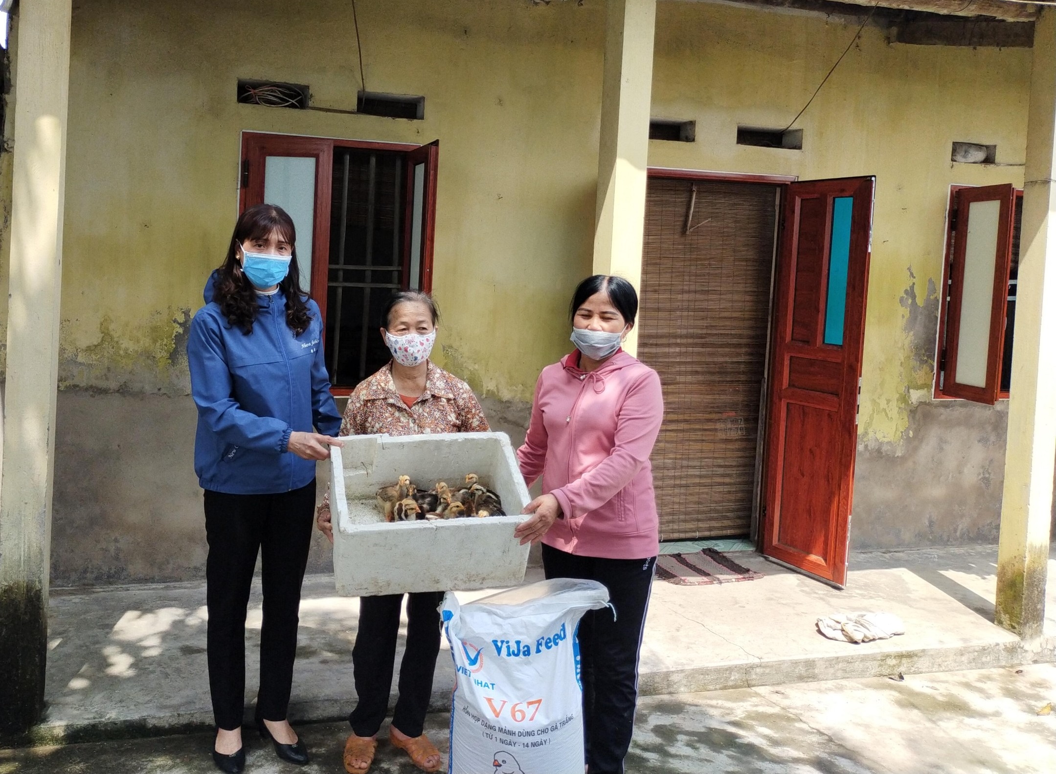 Hội Liên hiệp Phụ nữ xã Độc Lập trao gà giống và thức ăn chăn nuôi cho phụ nữ có hoàn cảnh khó khăn.