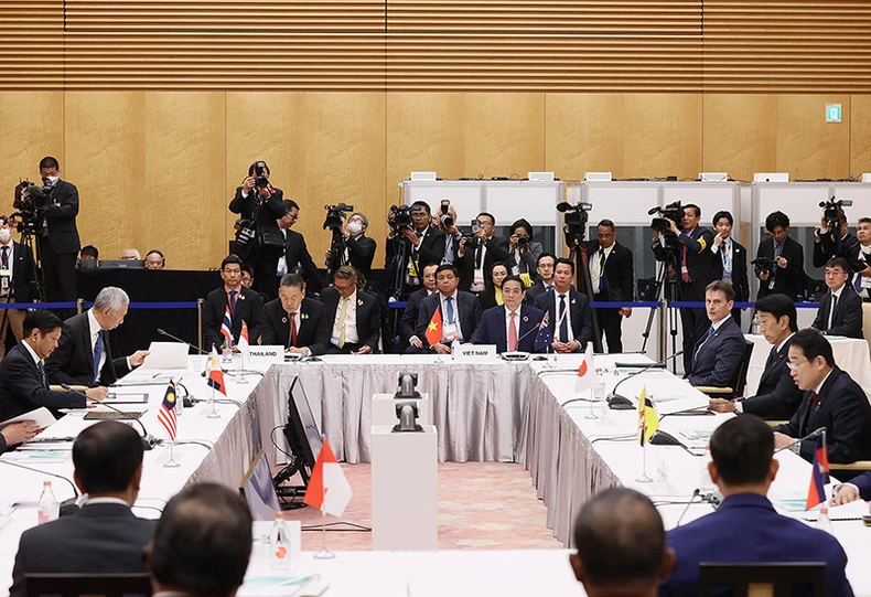 Thủ tướng Nhật Bản Kishida Fumio chào đón Thủ tướng Phạm Minh Chính tham dự Hội nghị.