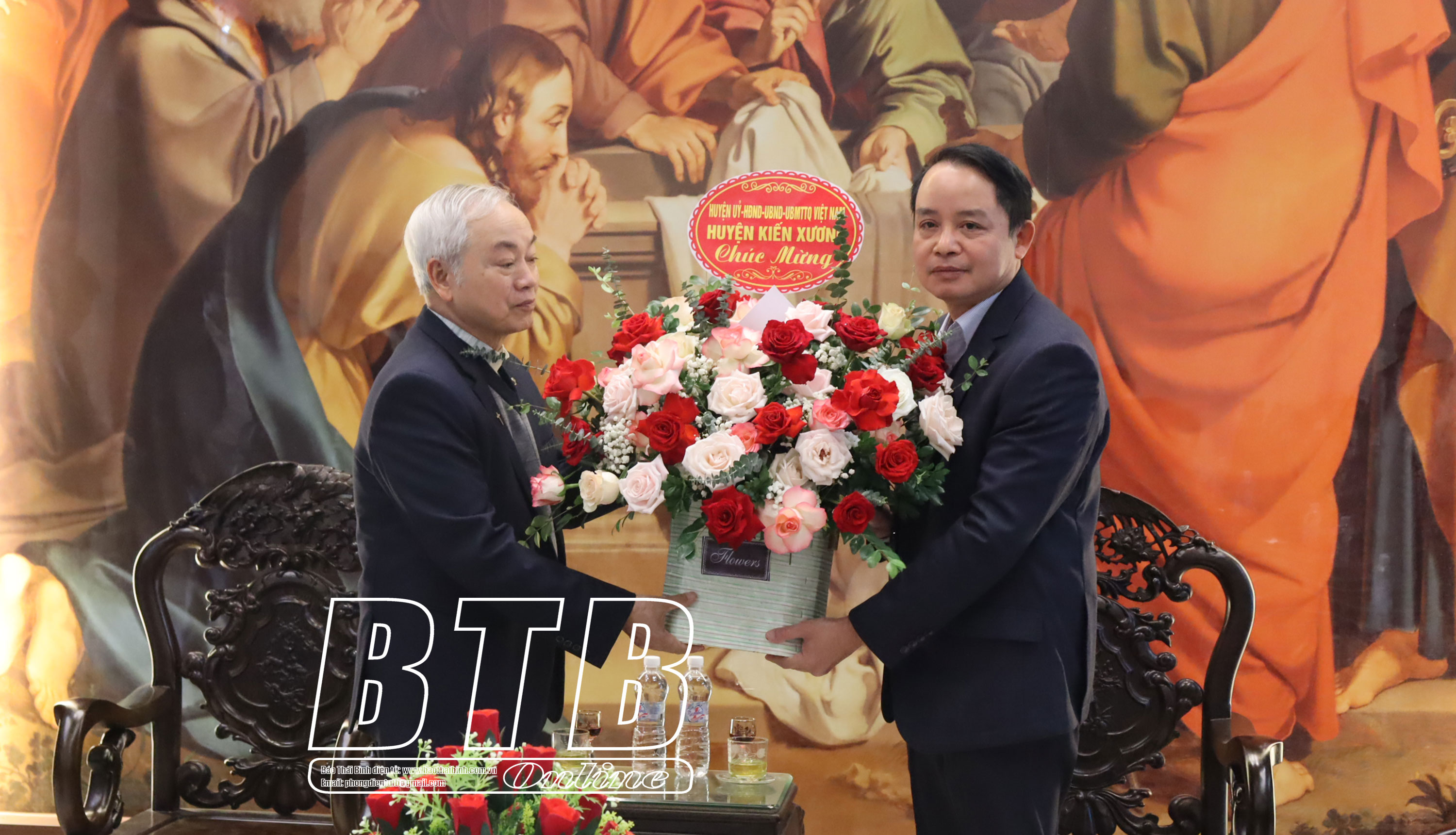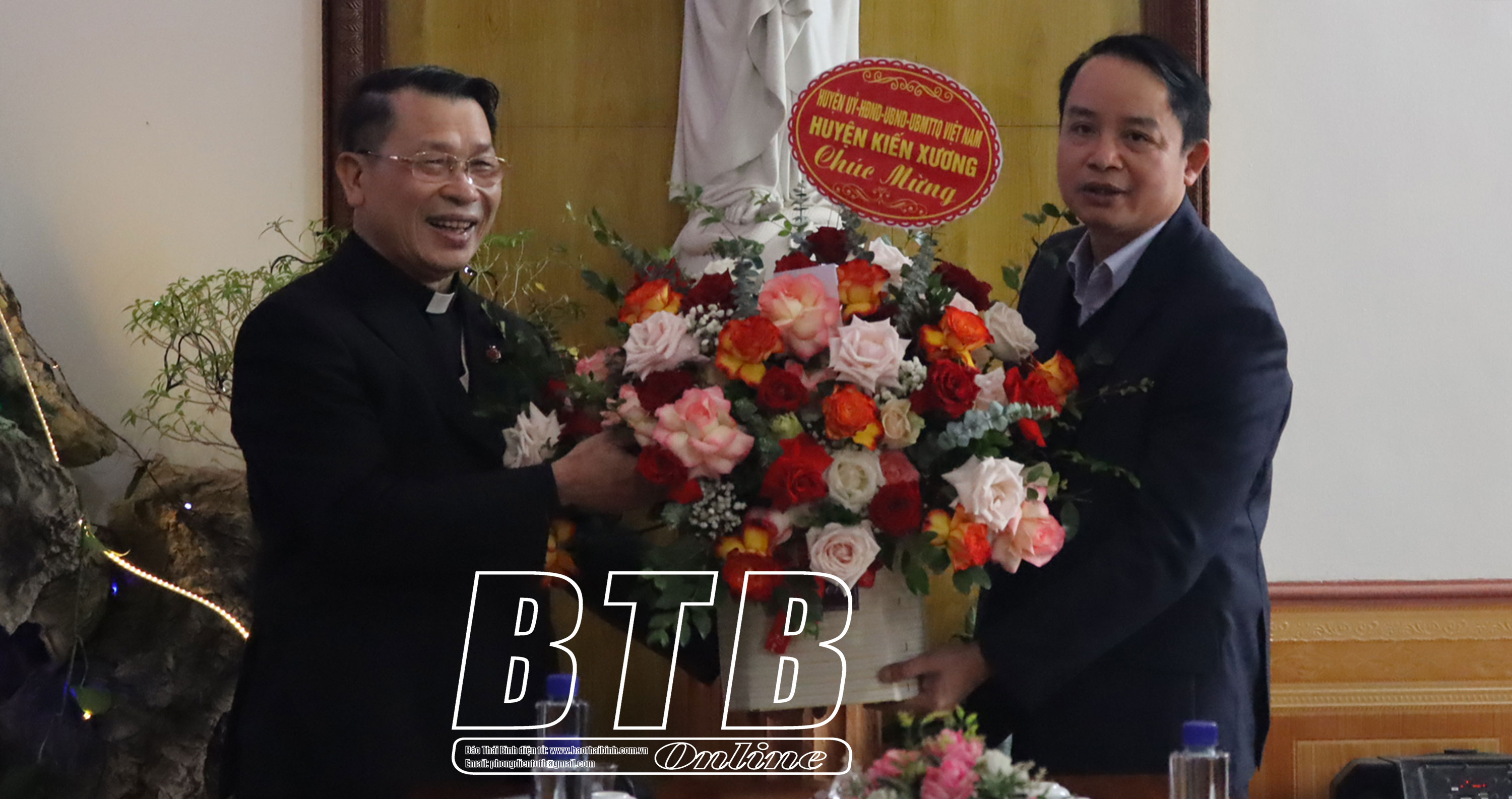 Thay mặt Tỉnh ủy, HĐND, UBND, Ủy ban MTTQ tỉnh, đồng chí Phó Bí thư thường trực Tỉnh ủy, Chủ tịch HĐND tỉnh đã tặng hoa, tặng quà và gửi lời chúc mừng tốt đẹp nhất tới các linh mục, các vị chức sắc, chức việc, bà con giáo dân huyện Kiến Xương trong mùa Giáng sinh năm 2023 và năm mới 2024 an lành, hạnh phúc.