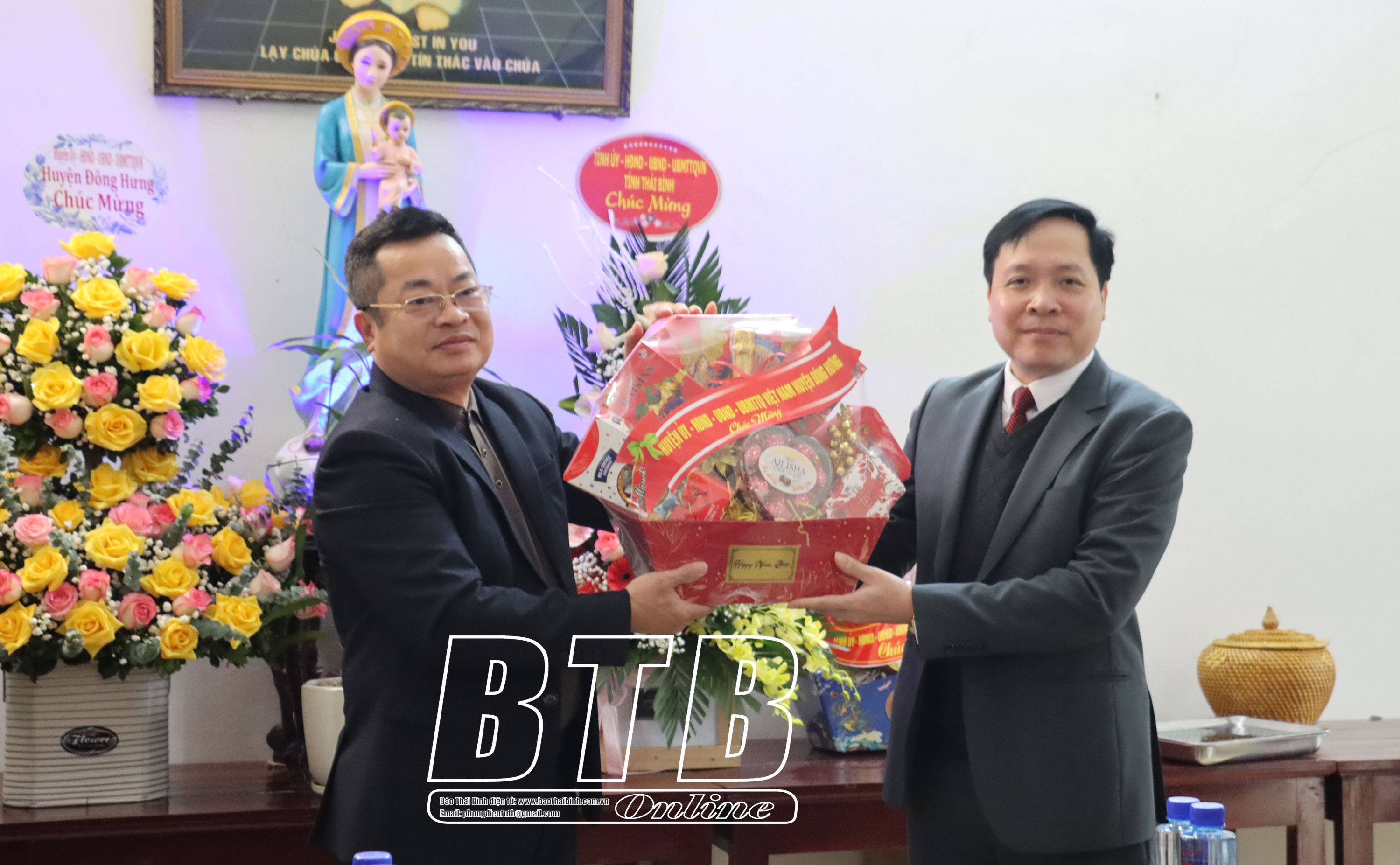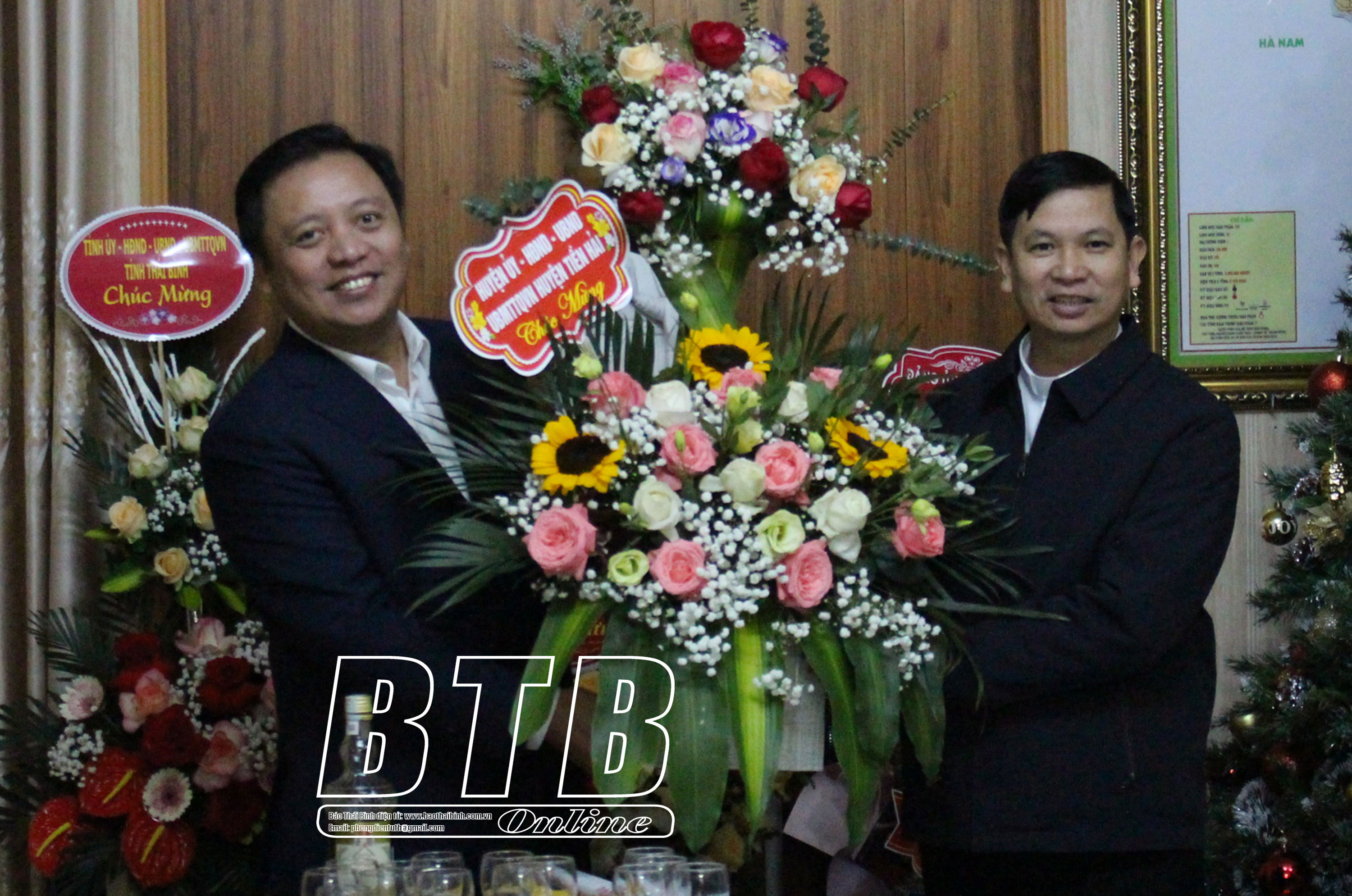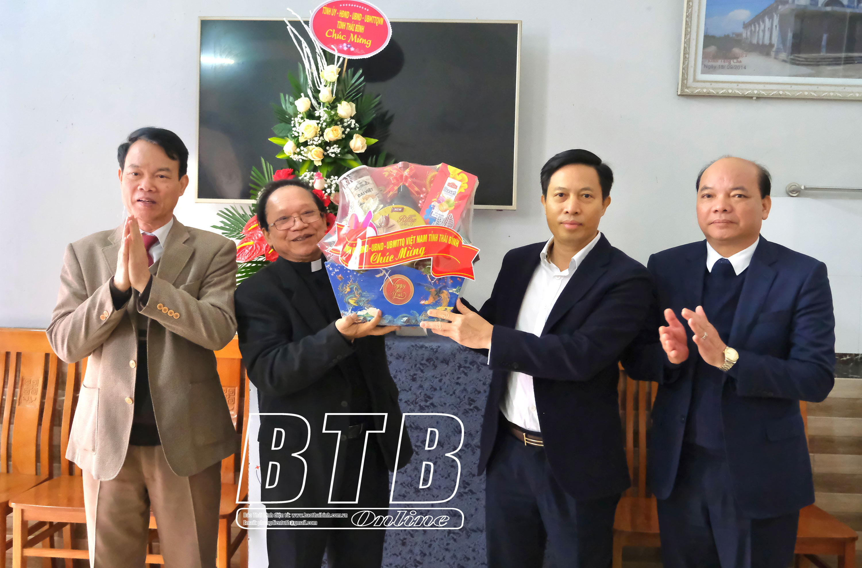 Đồng chí Phó Chủ tịch thường trực UBND tỉnh cùng các thành viên trong đoàn đã tặng hoa, tặng quà Linh mục Phạm Công Dũng, Hạt trưởng Hạt Thái Thụy, Chánh xứ Giáo xứ Thượng Phúc, xã Thụy Sơn và Linh mục Nguyễn Văn Kha, Chánh xứ Giáo xứ Vạn Đồn, xã Hồng Dũng; chúc mừng các chức sắc và đồng bào Công giáo trên địa bàn huyện đón một mùa Giáng sinh an lành, hạnh phúc.