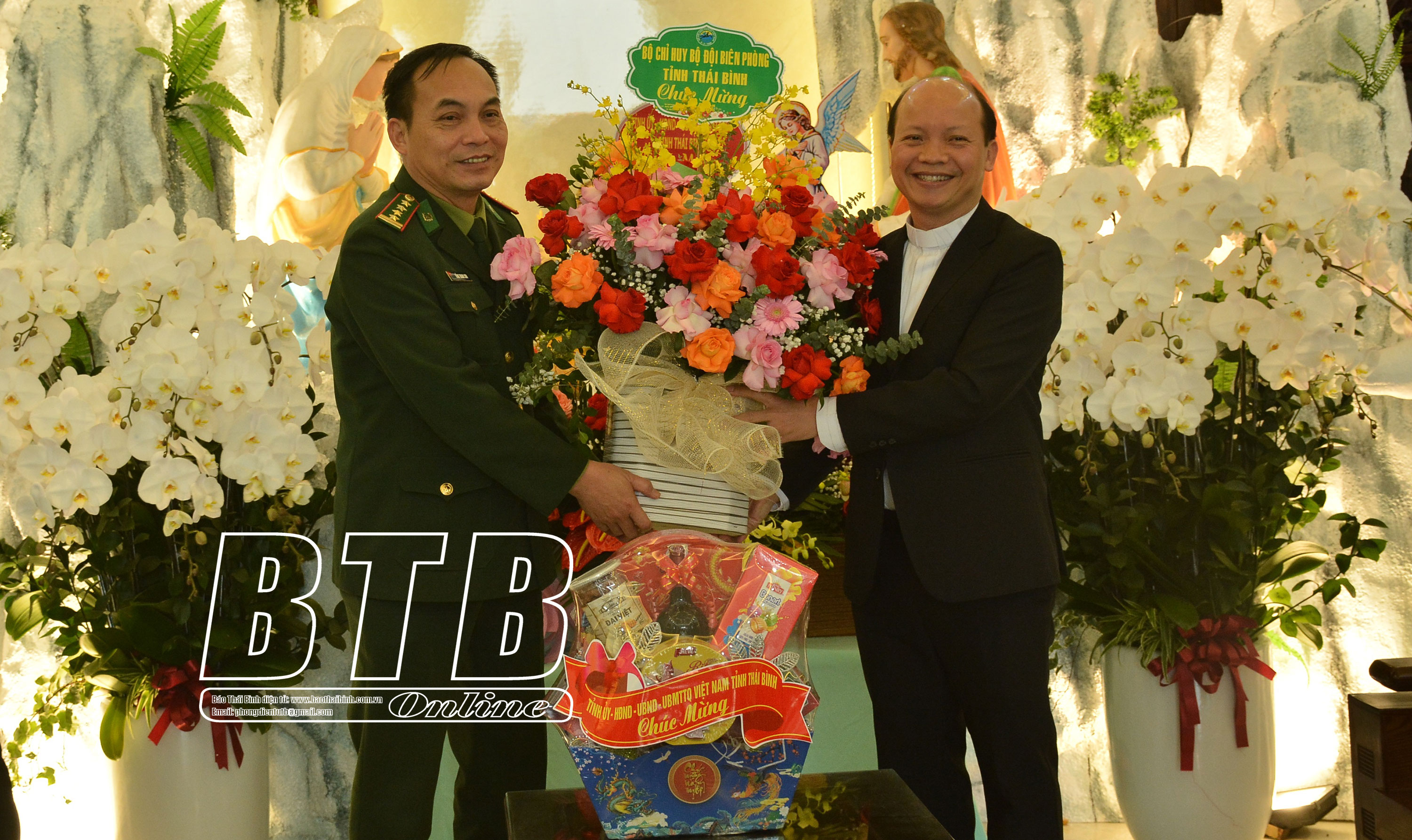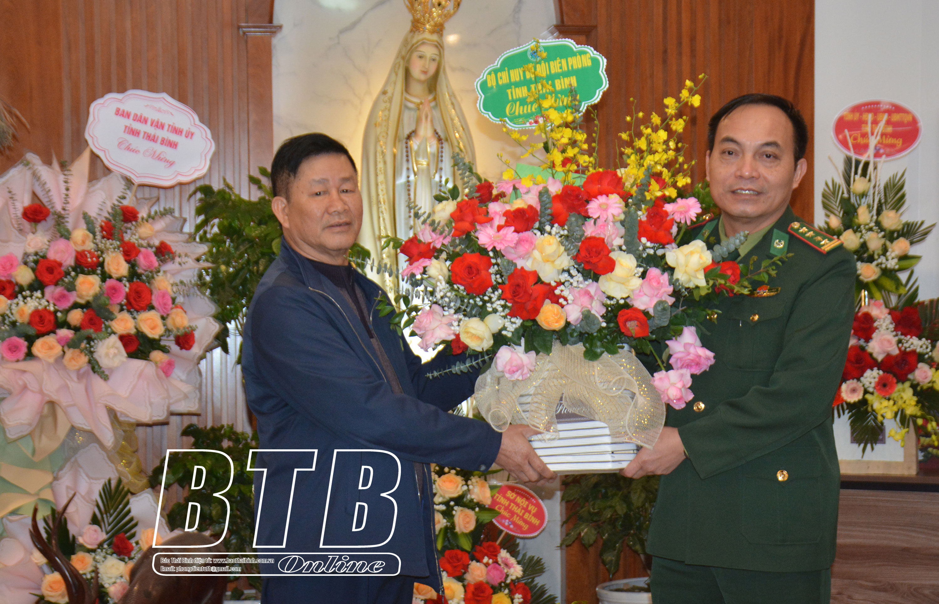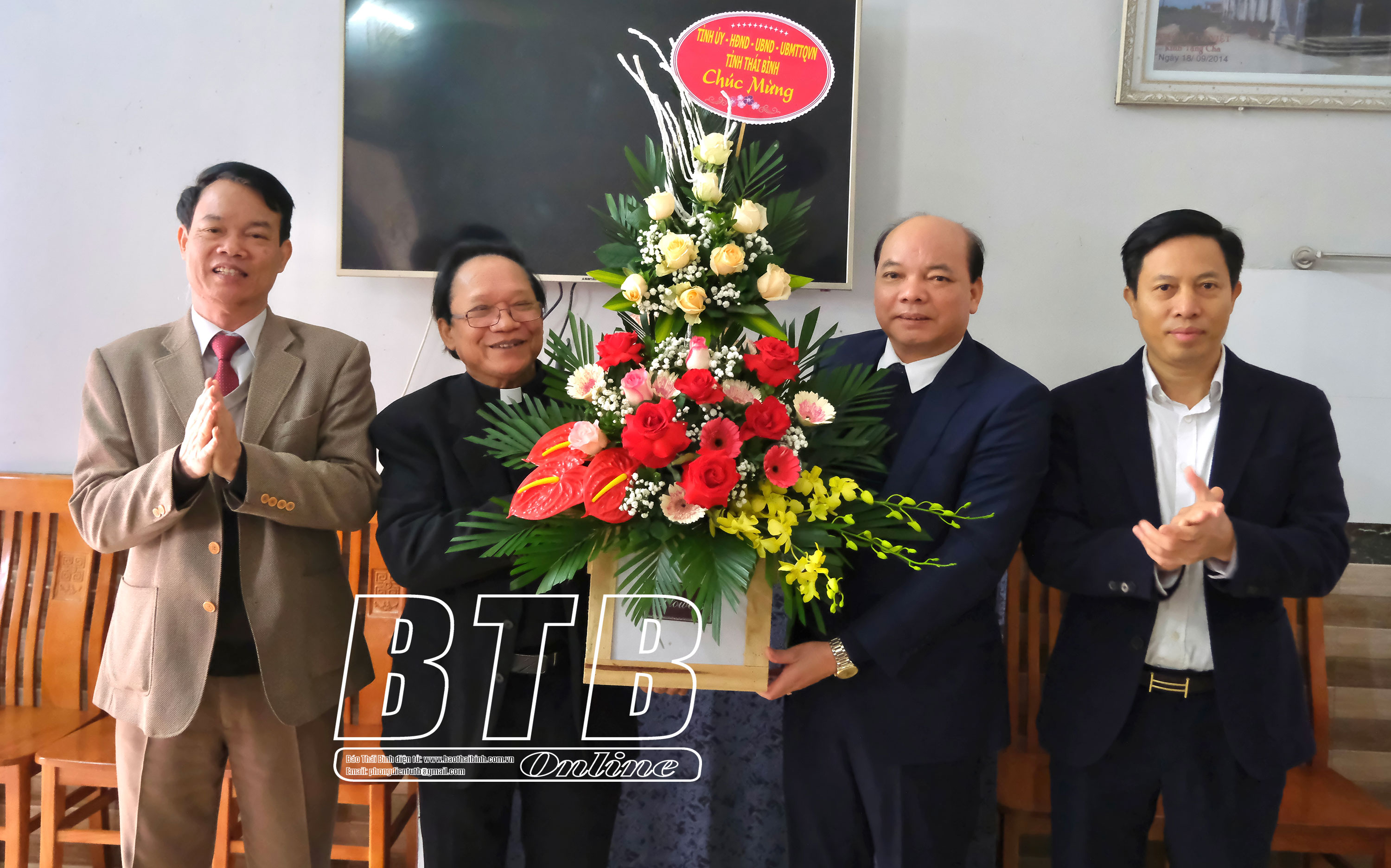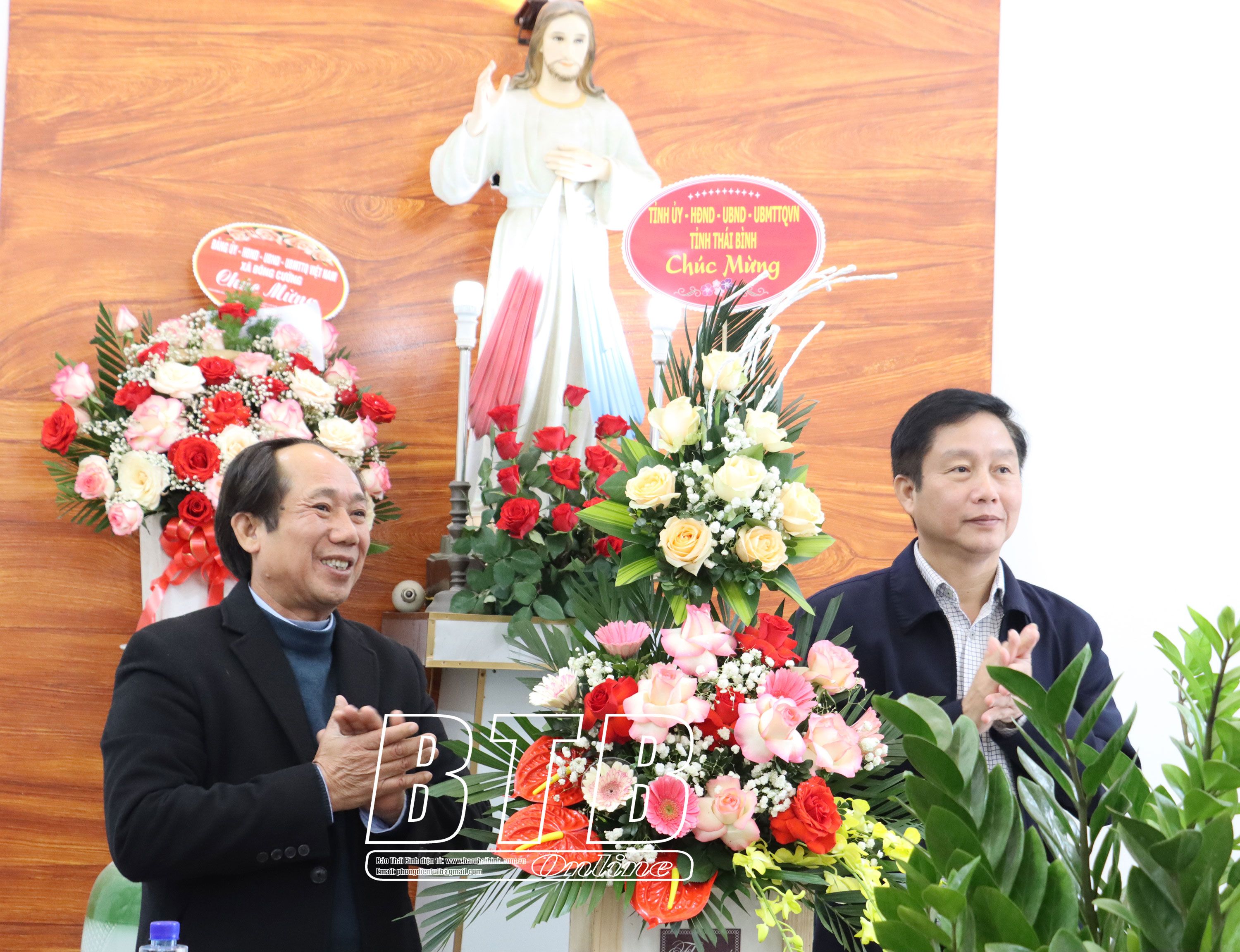 Đồng chí Phó Chủ tịch thường trực UBND tỉnh cùng các thành viên trong đoàn đã tặng hoa, tặng quà Linh mục Phạm Công Dũng, Hạt trưởng Hạt Thái Thụy, Chánh xứ Giáo xứ Thượng Phúc, xã Thụy Sơn và Linh mục Nguyễn Văn Kha, Chánh xứ Giáo xứ Vạn Đồn, xã Hồng Dũng; chúc mừng các chức sắc và đồng bào Công giáo trên địa bàn huyện đón một mùa Giáng sinh an lành, hạnh phúc.
