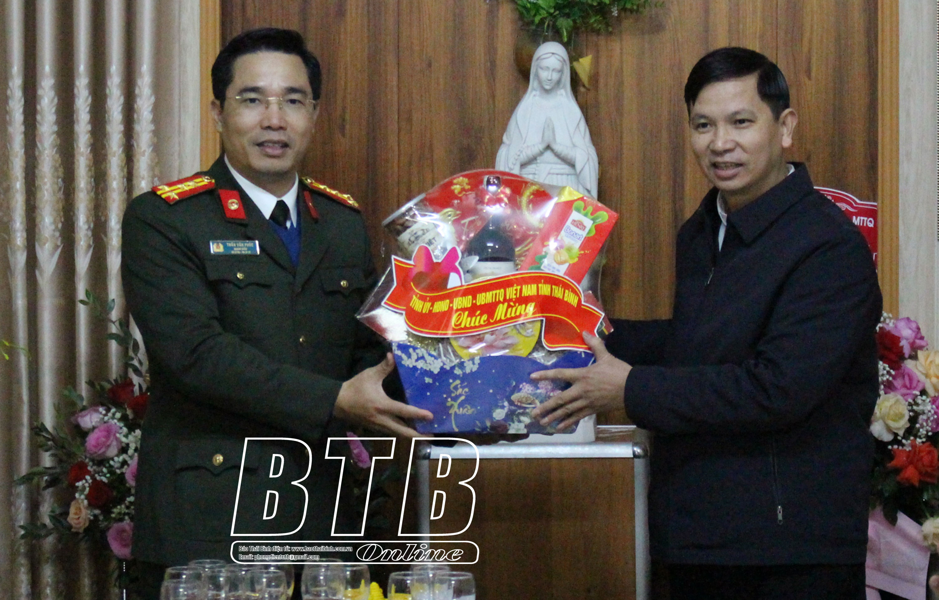Thay mặt lãnh đạo tỉnh, đồng chí Giám đốc Công an tỉnh thăm hỏi đời sống của bà con giáo dân, đồng thời chúc các linh mục và đồng bào Công giáo sức khỏe, đón mùa Giáng sinh an lành, năm mới hạnh phúc. Đồng chí mong muốn các linh mục nêu cao tinh thần trách nhiệm, tiếp tục tuyên truyền, vận động bà con giáo dân thực hiện nghiêm đường lối, chủ trương của Đảng, chính sách, pháp luật của Nhà nước; hăng hái thi đua phát triển kinh tế, tích cực tham gia các phong trào xây dựng nông thôn mới, giữ gìn an ninh trật tự góp phần cùng cấp ủy, chính quyền và nhân dân thực hiện thắng lợi các mục tiêu phát triển kinh tế, xã hội của địa phương.