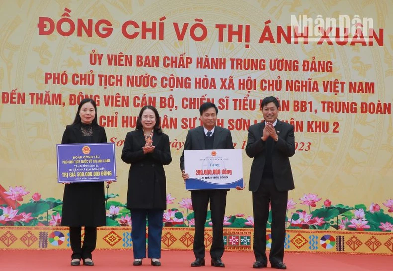 Trong dịp này, đồng chí Phó Chủ tịch nước đã tặng 10 nhà “Đại đoàn kết” tổng trị giá 500 triệu đồng cho tỉnh Sơn La; tặng quà cho 30 hộ gia đình có hoàn cảnh khó khăn trên địa bàn thành phố Sơn La; tặng 200 suất quà cho Quỹ bảo trợ trẻ em tỉnh Sơn La.