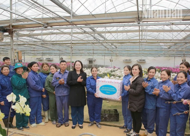 Đồng chí Phó Chủ tịch nước tặng quà công nhân Công ty cổ phần Hoa nhiệt đới.