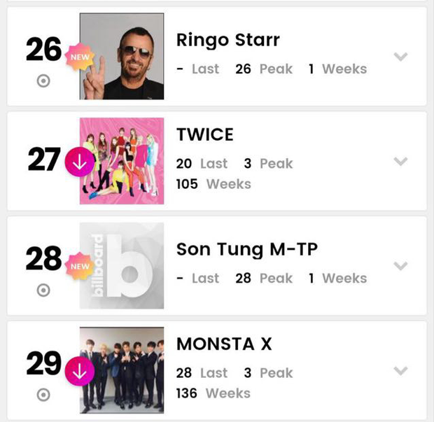 Sơn Tùng M-TP xếp hạng 28.