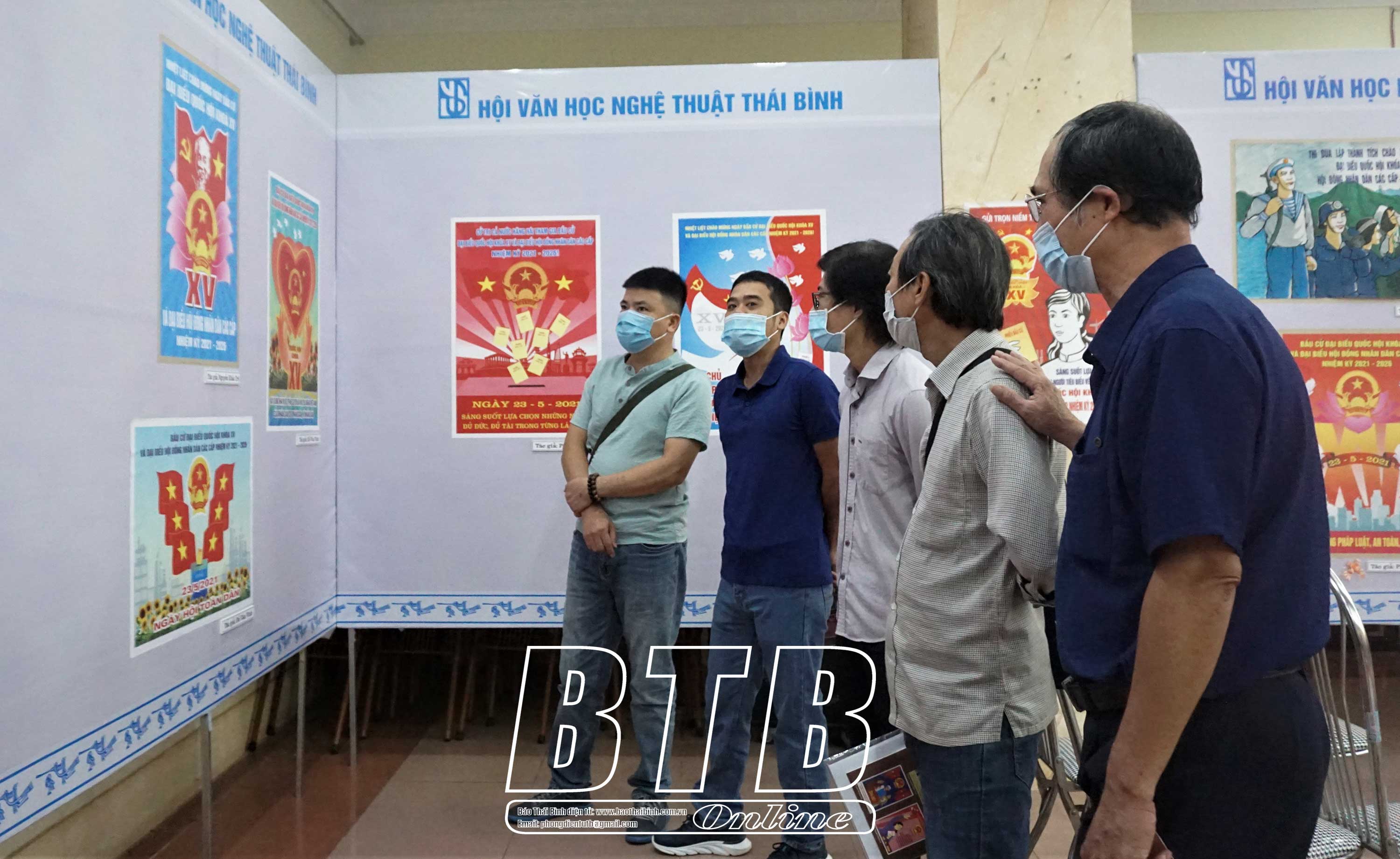 Triển lãm tranh tuyên truyền bầu cử thu hút sự quan tâm của người dân.