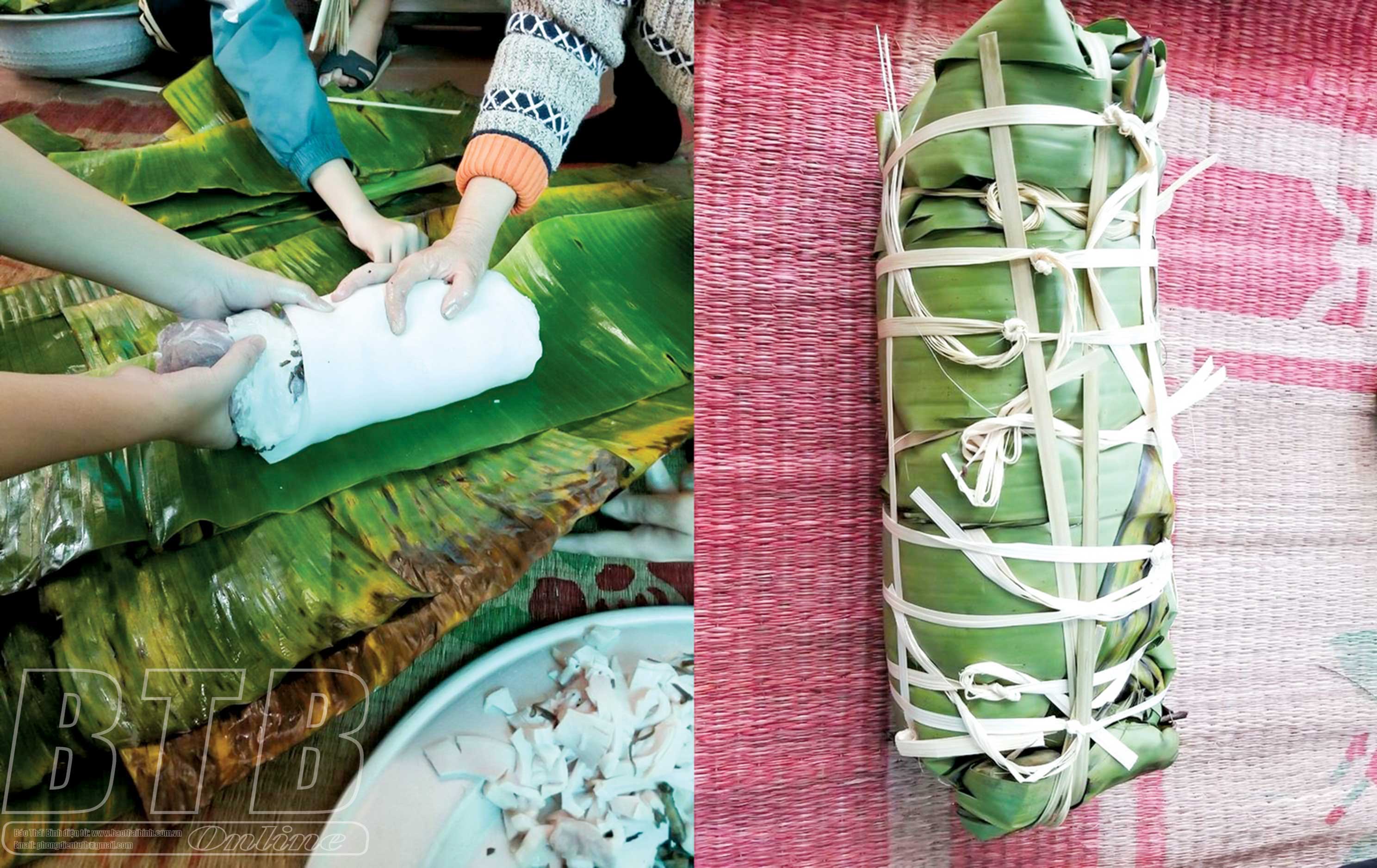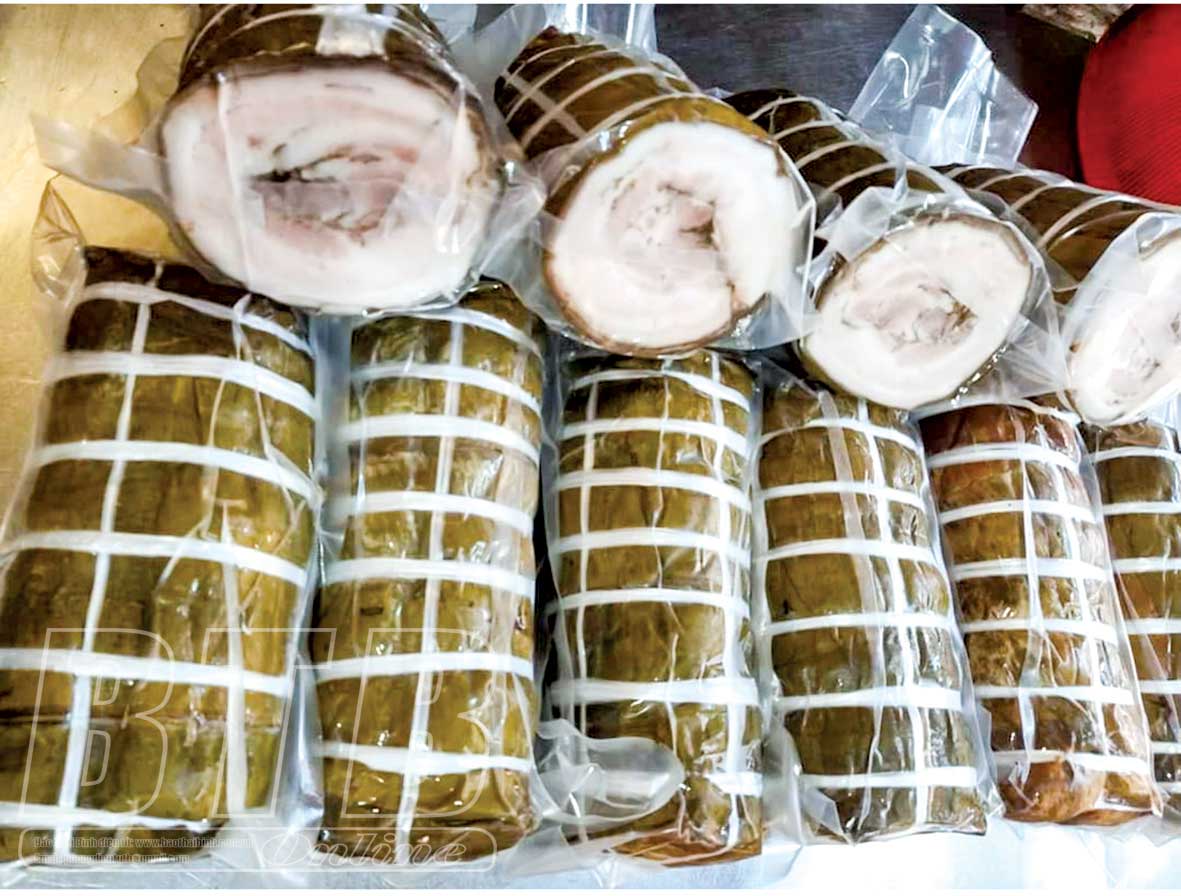 Hay như món giò nây cũng có tên trong thực đơn mâm cỗ, nhiều người có thể chưa biết đến loại giò này. Giò nây được gói từ thịt ba chỉ, cả miếng thịt ba chỉ to, tẩm ướp gia vị, gói lại bằng lá chuối, luộc từ 4 - 5 tiếng, luộc xong ép cho cứng lại, ăn có vị nhừ của thịt, vị thơm của gia vị, lá chuối, mang hương vị của mâm cỗ ngày tết.