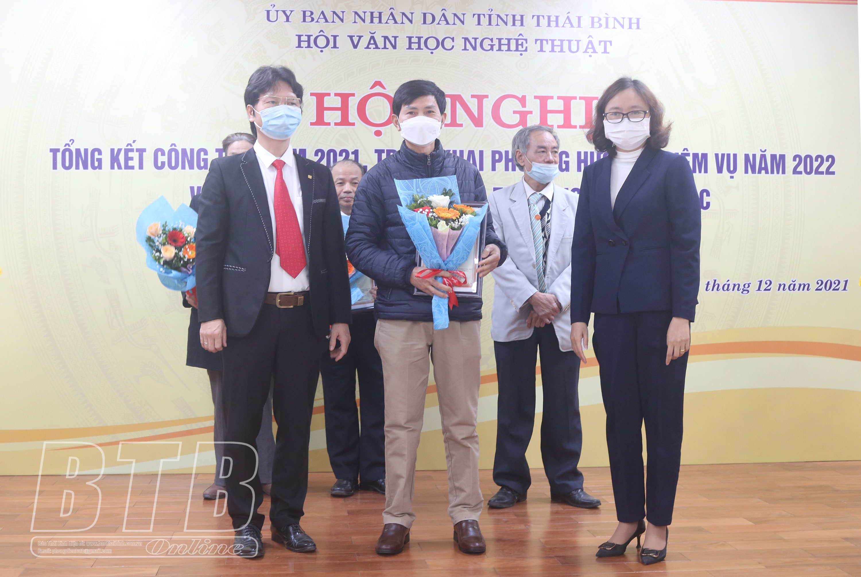 Tại hội nghị, Hội Văn học Nghệ thuật tỉnh đã trao giấy khen cho 23 tập thể, cá nhân có thành tích tiêu biểu trong thực hiện nhiệm vụ Hội năm 2021; trao 1 giải nhất, 2 giải nhì, 3 giải ba và 5 giải khuyến khích cho các tác giả đạt giải trong cuộc thi sáng tác văn học Chung tay đẩy lùi dịch Covid-19.