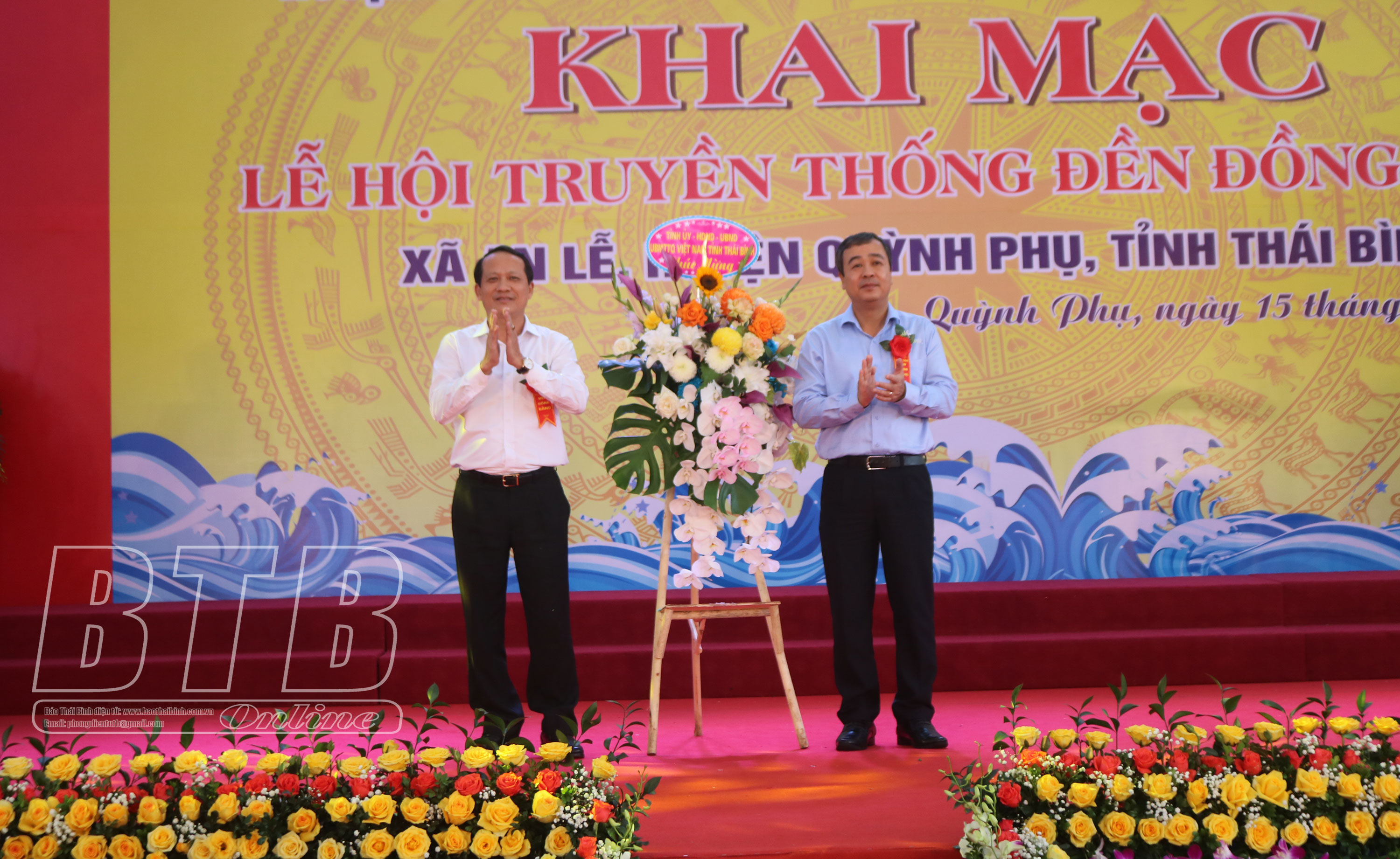 Đồng chí Ngô Đông Hải, Ủy viên Ban Chấp hành Trung ương Đảng, Bí thư Tỉnh ủy tặng hoa chúc mừng Ban tổ chức lễ hội đền Đồng Bằng.
