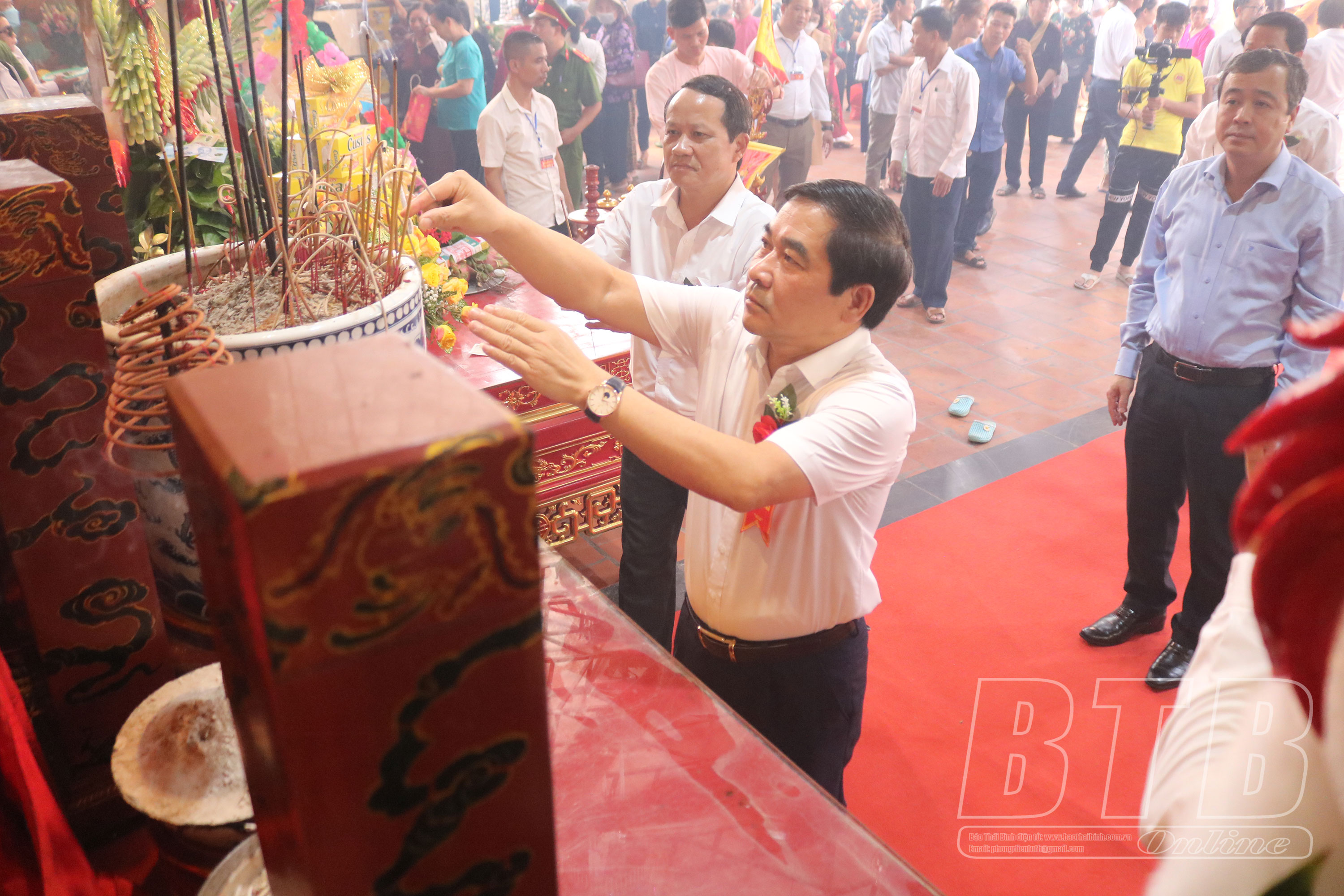 Tới dự và dâng hương tưởng niệm có các đồng chí: Ngô Đông Hải, Ủy viên Ban Chấp hành Trung ương Đảng, Bí thư Tỉnh ủy; Nguyễn Tiến Thành, Phó Bí thư thường trực Tỉnh ủy, Chủ tịch HĐND tỉnh; các đồng chí Ủy viên Ban Thường vụ Tỉnh ủy, lãnh đạo UBND tỉnh, các sở, ngành, huyện, thành phố cùng đông đảo nhân dân và du khách thập phương.