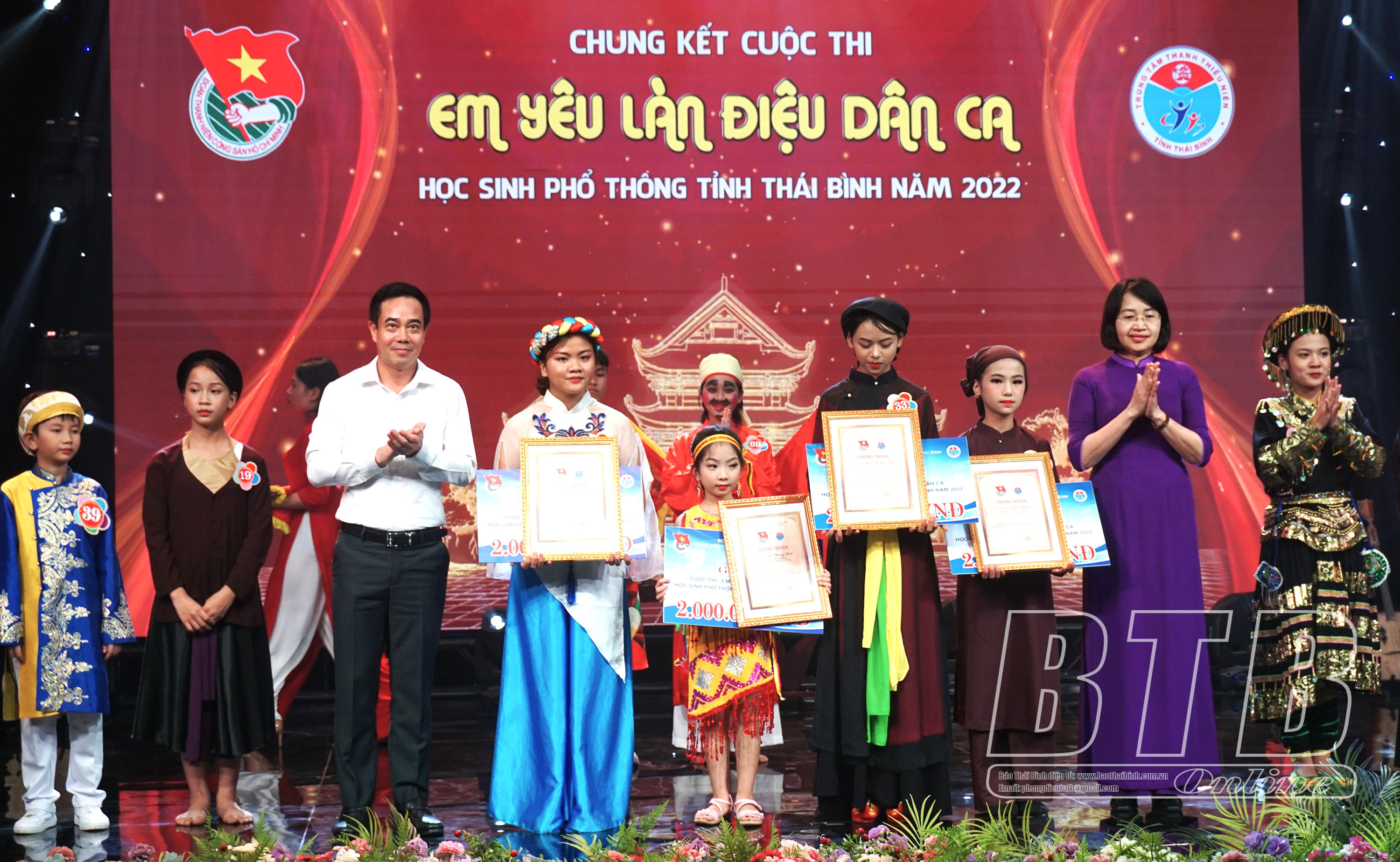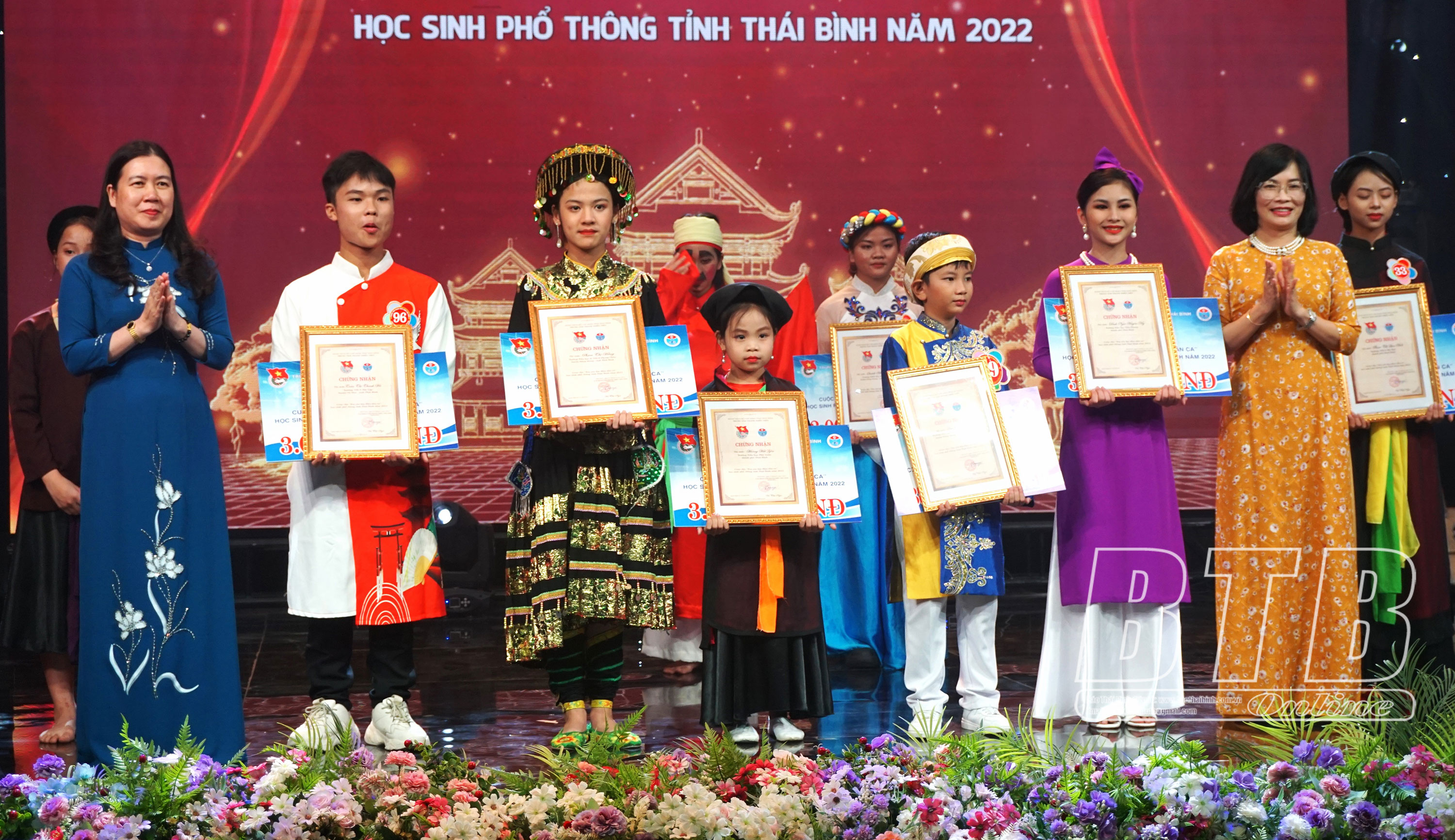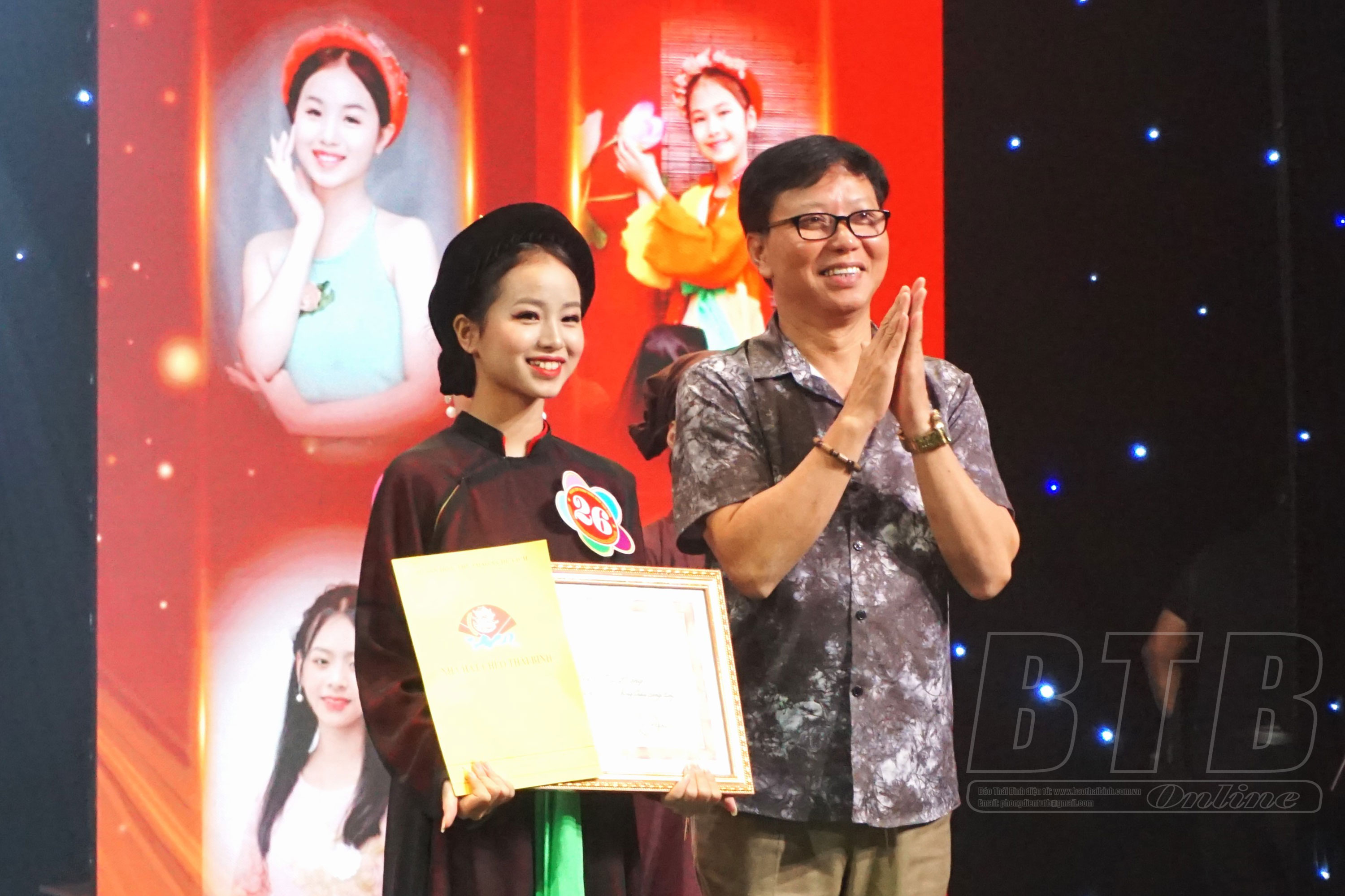 Các đồng chí: Trần Thị Bích Hằng, Tỉnh ủy viên, Phó Chủ tịch UBND tỉnh; Trương Thị Hồng Hạnh, Tỉnh ủy viên, Giám đốc Sở Văn hóa, Thể thao và Du lịch trao giải nhì cho các thí sinh.