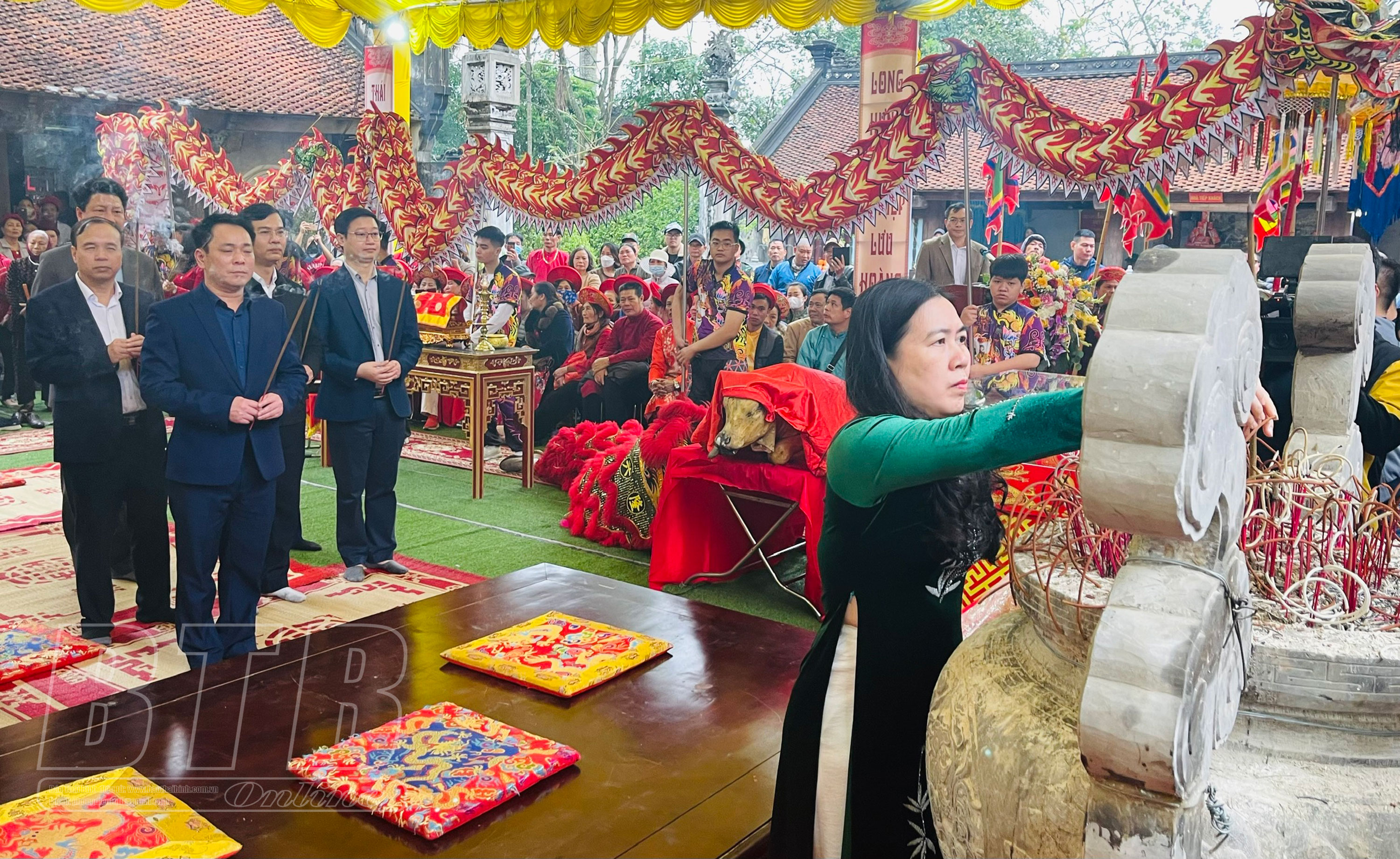 Đồng chí Trần Thị Bích Hằng,Tỉnh ủy viên, Phó Chủ tịch UBND tỉnh,Trưởng ban tổ chức lễ hội đền Trần dâng hương tại lễ mở cửa đền.