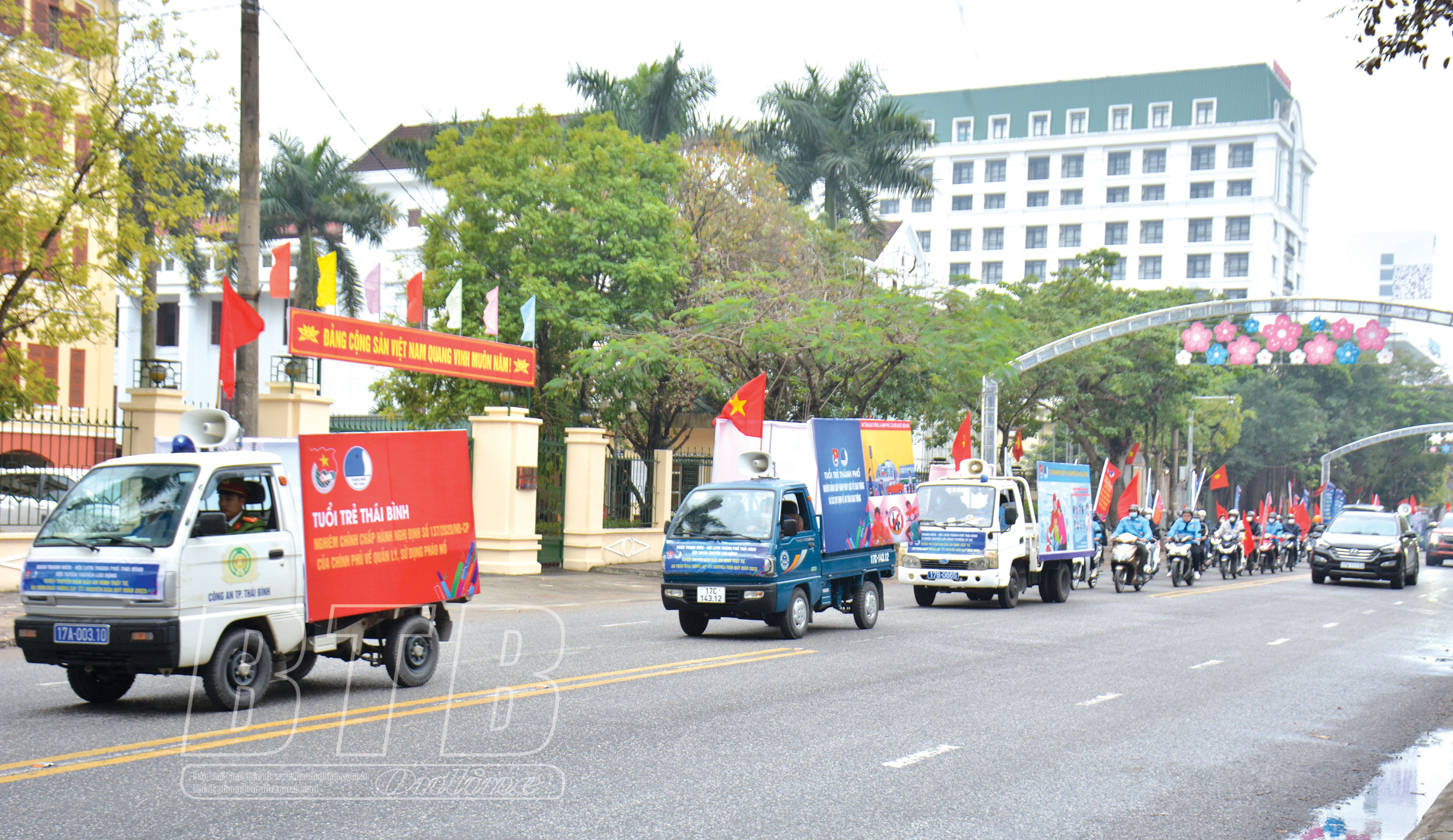 Tuyên truyền lưu động về bảo đảm an ninh trật tự trên địa bàn thành phố Thái Bình. Ảnh minh họa.