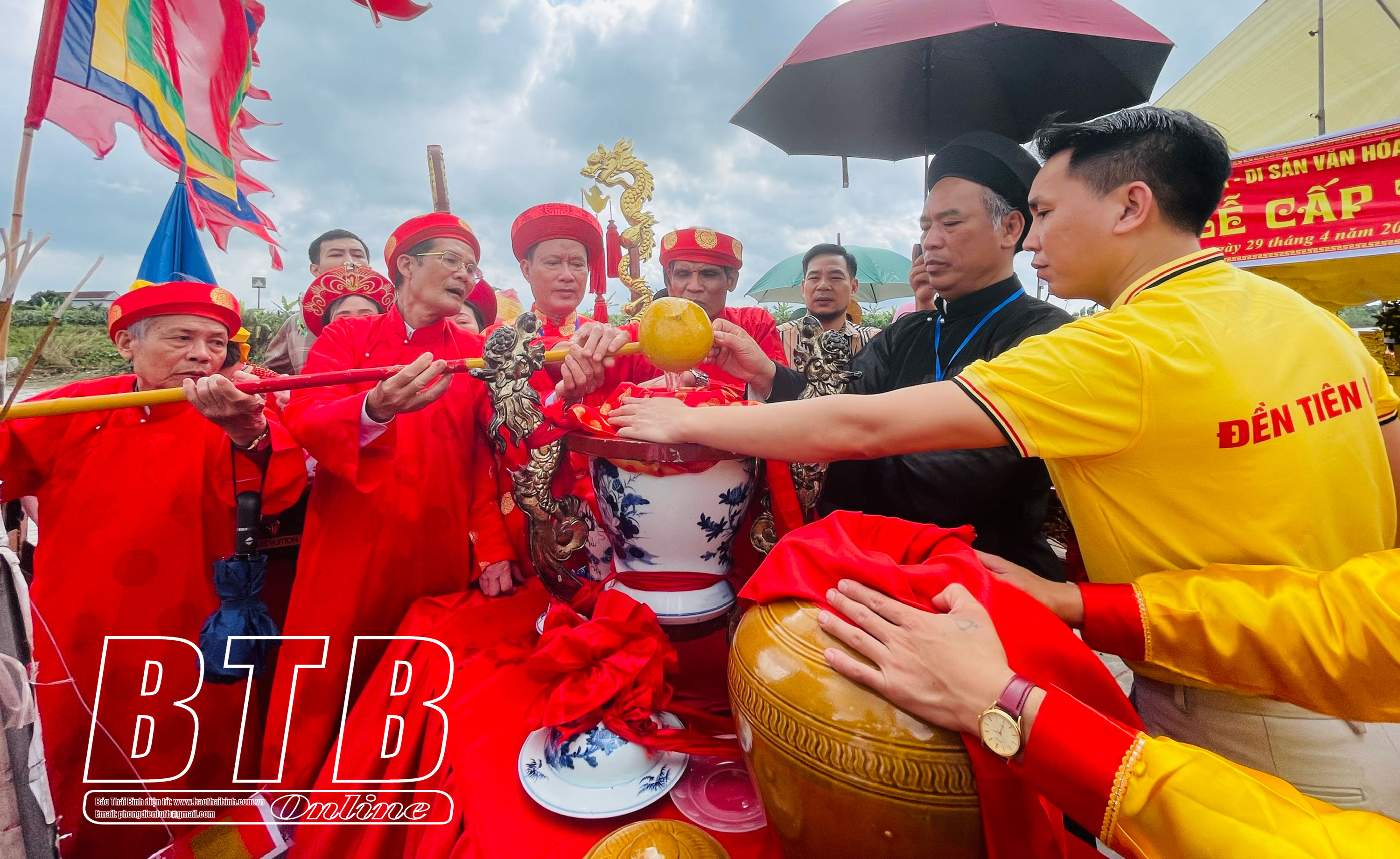 Theo tục lệ, nước được lấy từ giữa sông, thể hiện sự trong lành, tinh khiết.