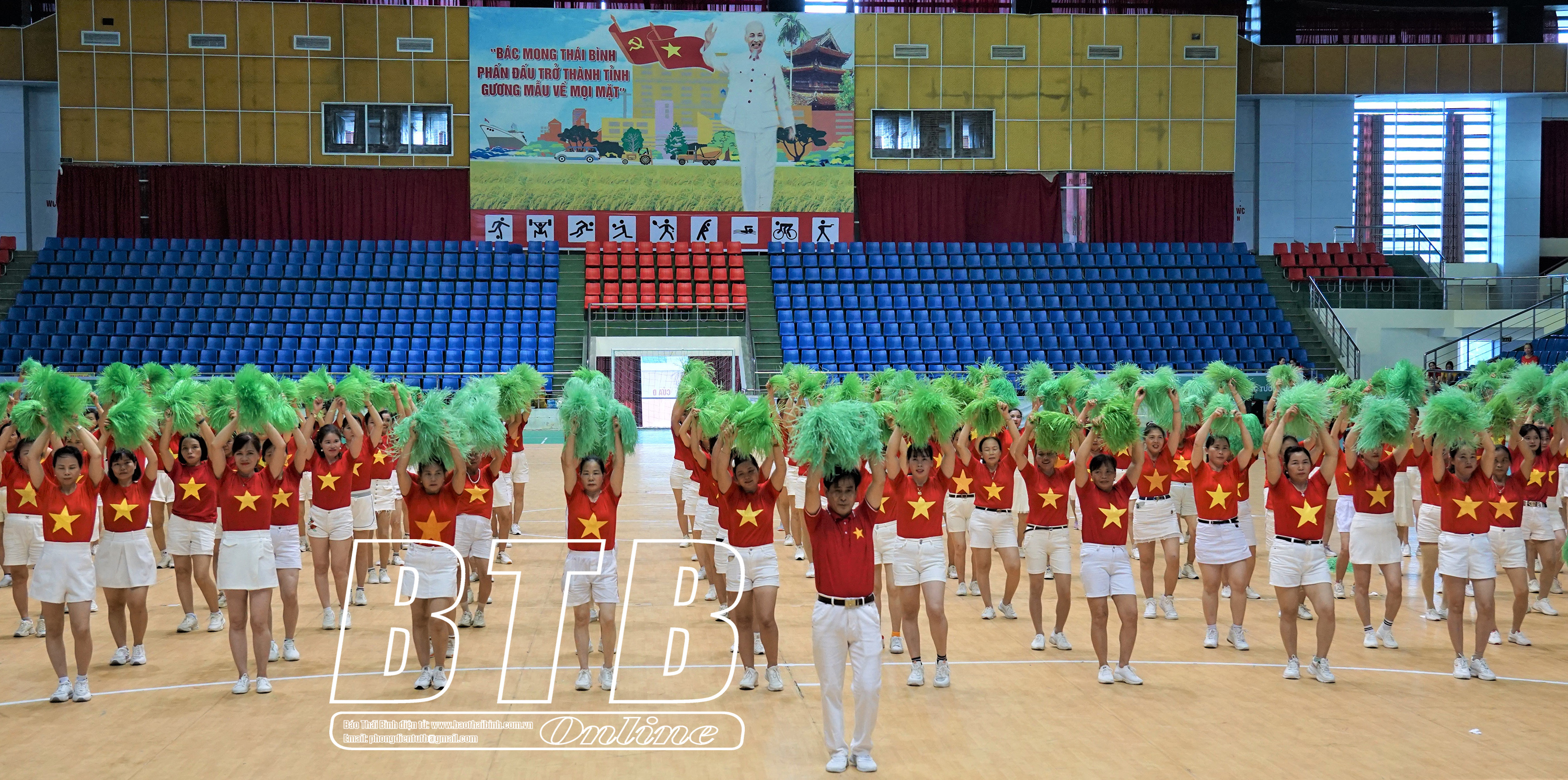 Hoạt động đồng diễn dân vũ tại Nhà thi đấu thể dục thể thao đa năng tỉnh.