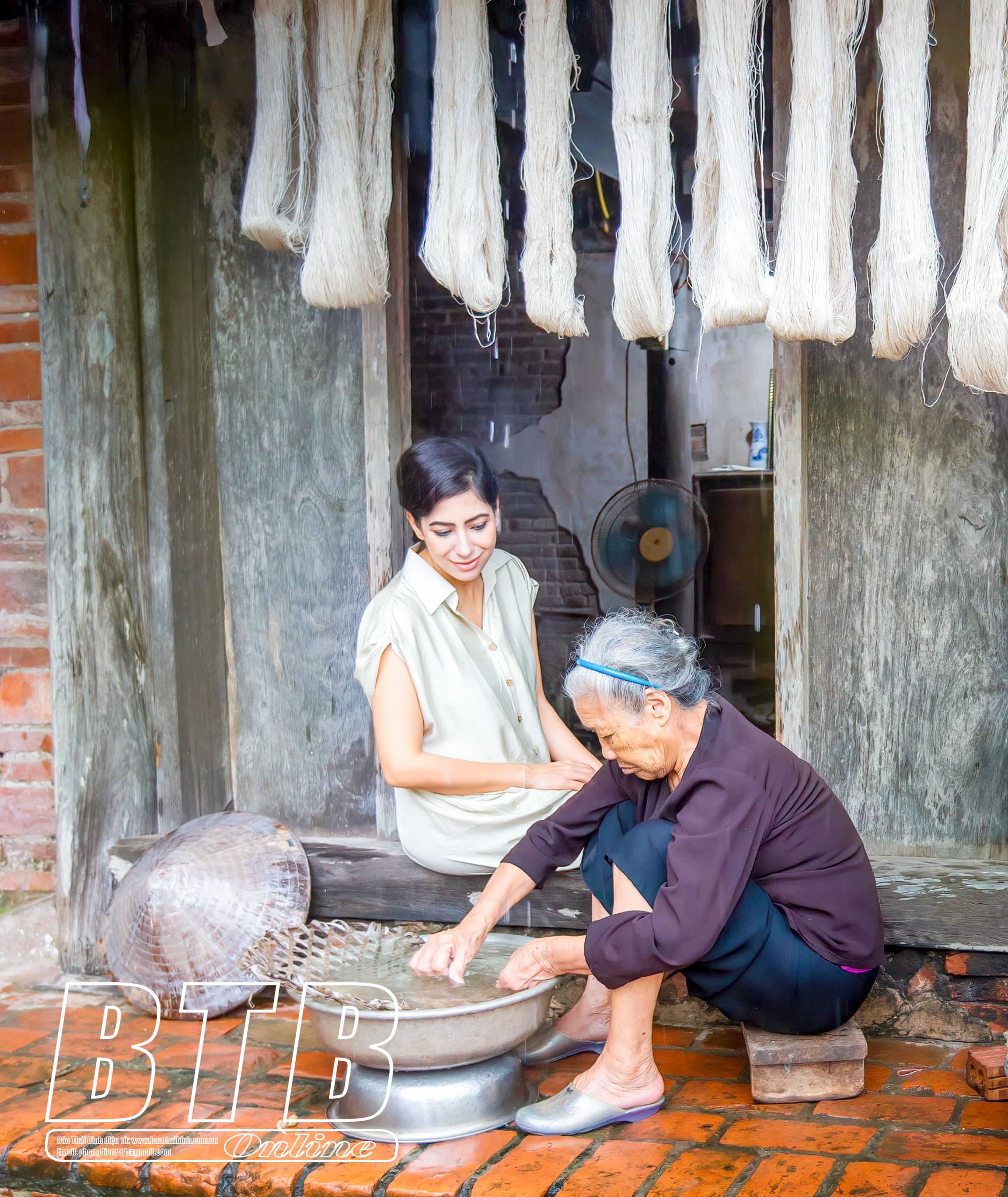 Du khách quốc tế ấn tượng với công đoạn kéo đũi của nghệ nhân làng nghề dệt đũi Nam Cao (Kiến Xương).