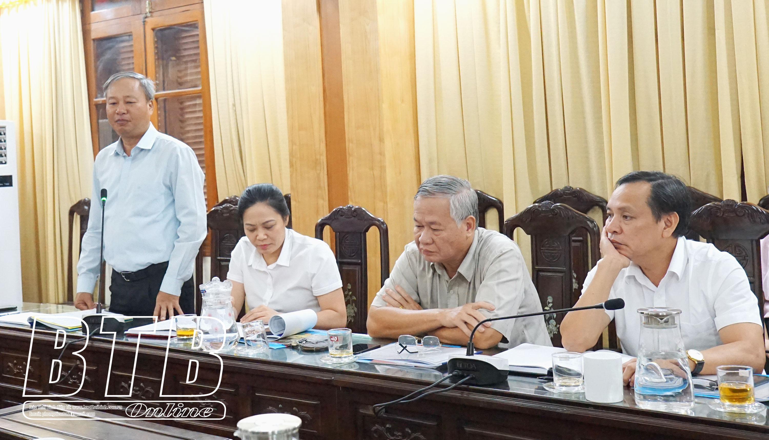 Đồng chí Nguyễn Quang Anh, Tỉnh ủy viên, Bí thư Huyện ủy Vũ Thư phát biểu tại cuộc họp.