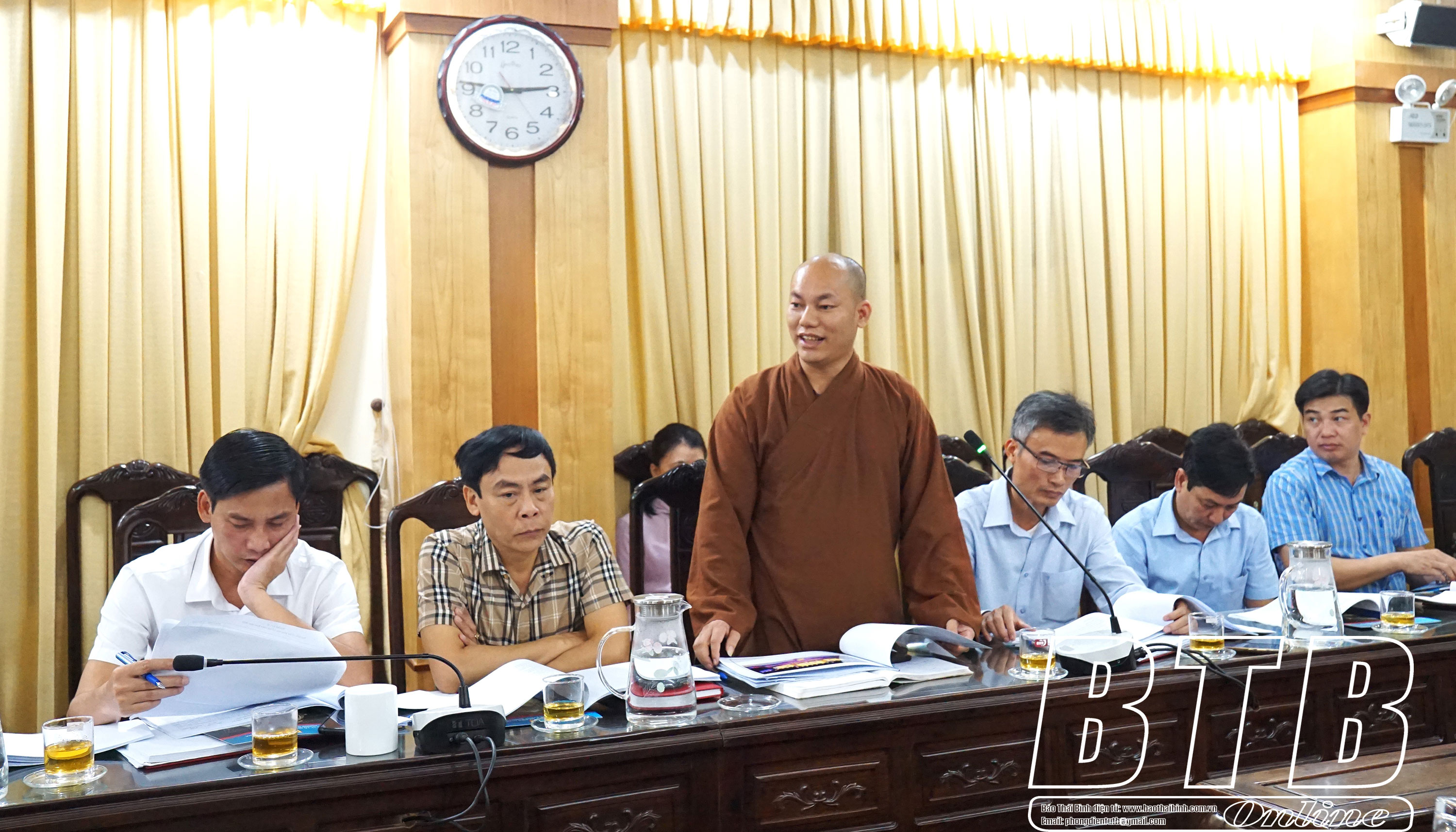 Đại đức trụ trì chùa Keo phát biểu tại cuộc họp.