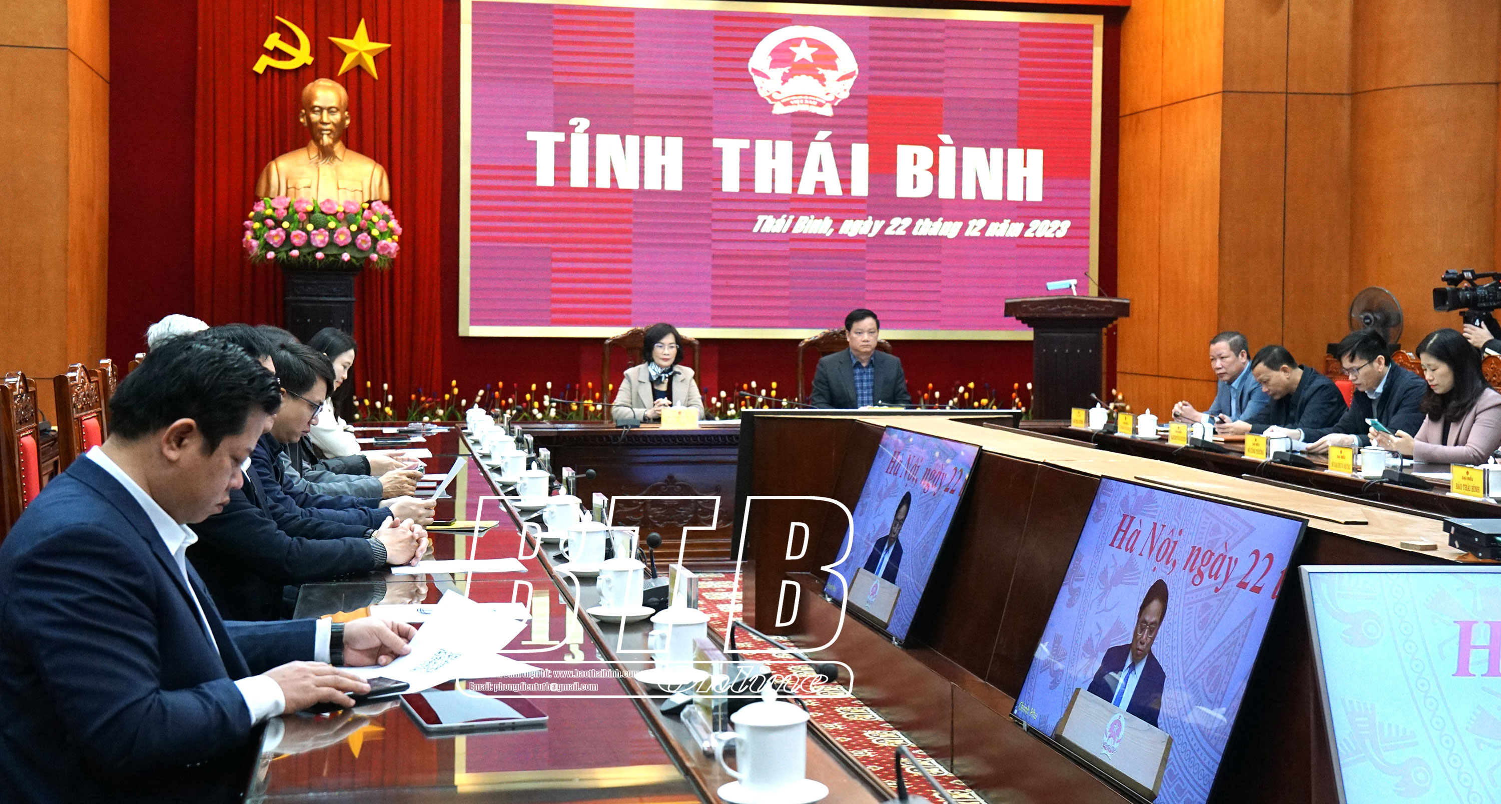 Các đồng chí lãnh đạo tỉnh và đại biểu dự hội nghị tại điểm cầu Thái Bình.