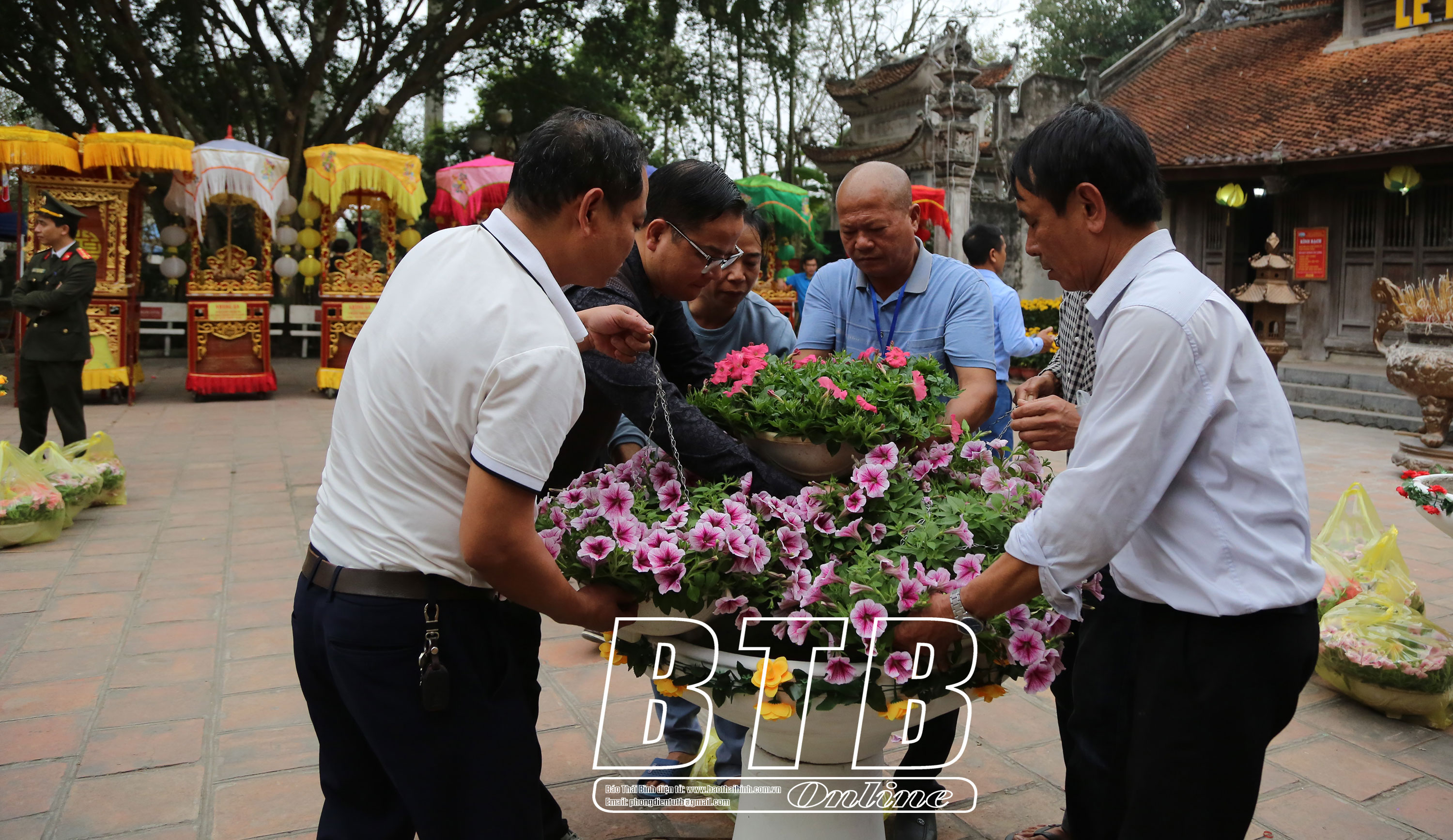 Trang trí tại khuôn viên khu di tích phục vụ lễ khai mạc và các hoạt động của lễ hội.