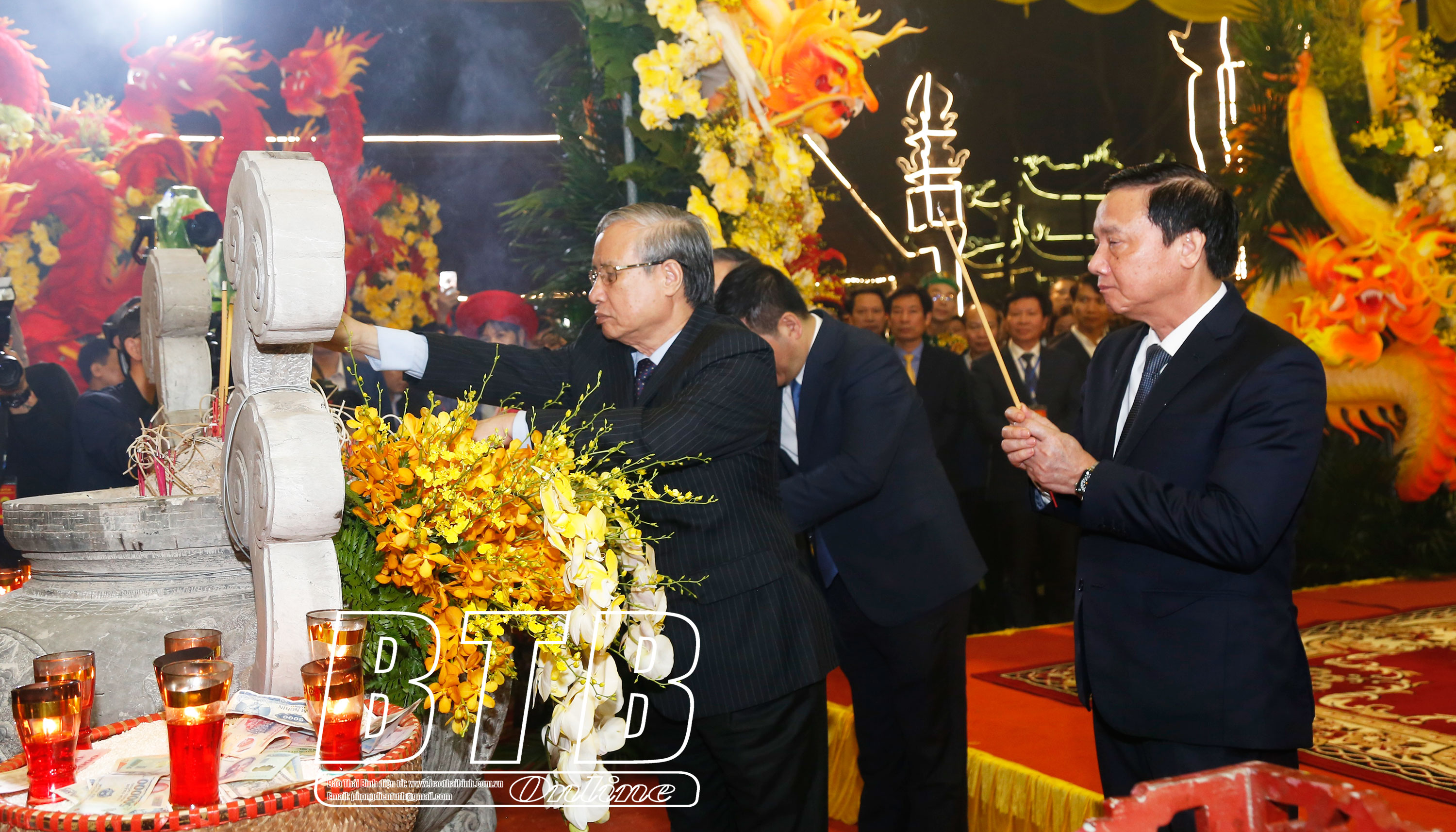 Các đồng chí lãnh đạo tỉnh dự lễ bái yết các vị vua triều Trần.