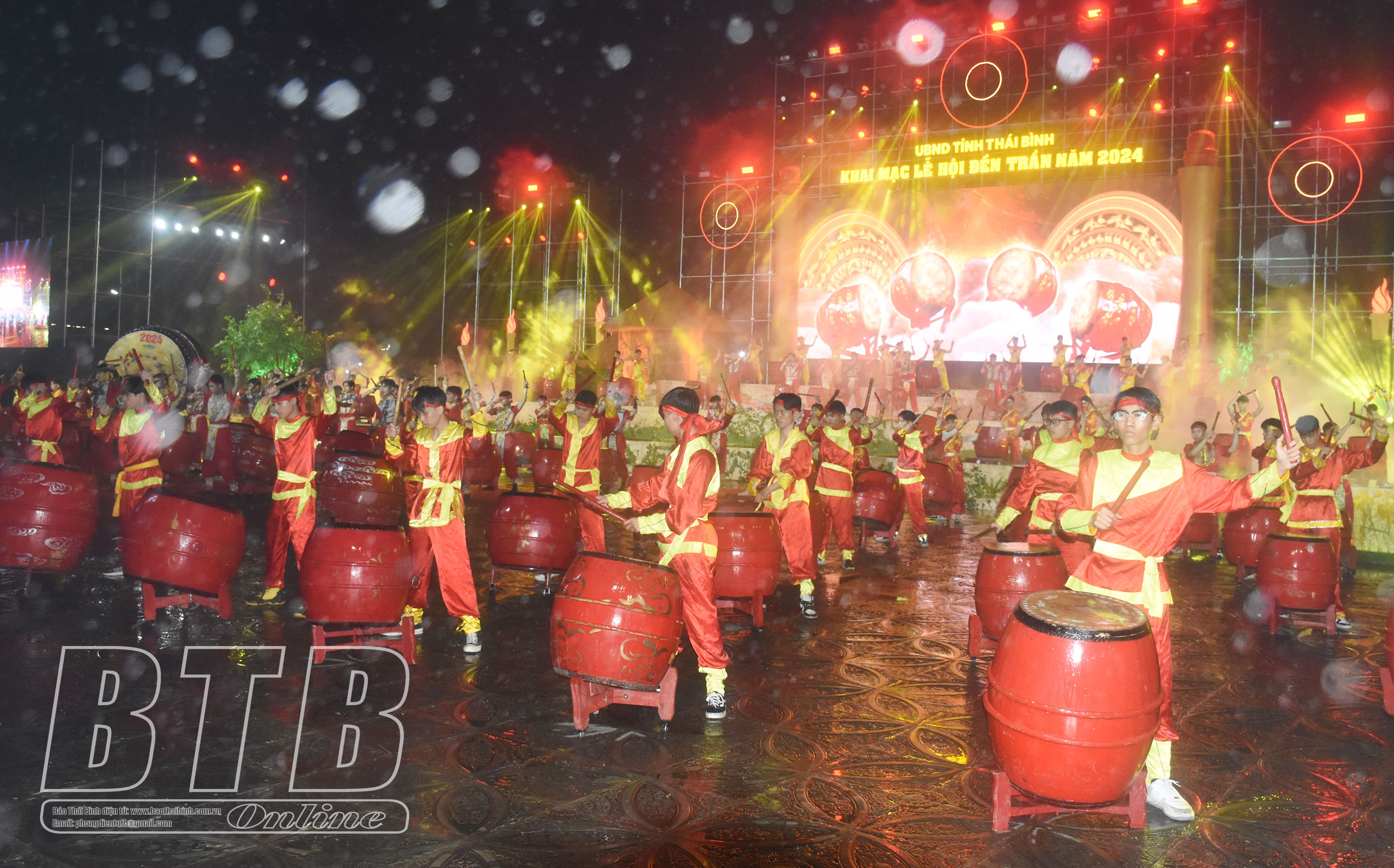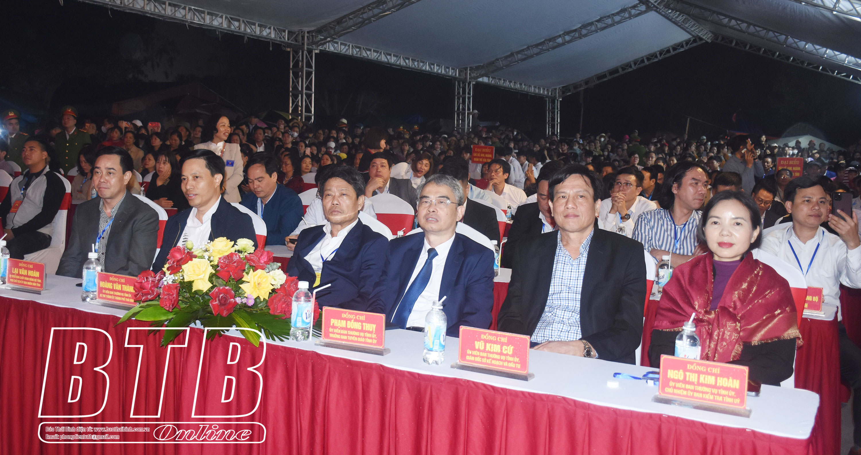 Đông đảo nhân dân địa phương, du khách thập phương đã theo dõi chương trình nghệ thuật với màn trống hội "Long Hưng - Tôn miếu triều Trần", vở diễn bán thực cảnh kết hợp trình diễn 3D mapping "Hùng oanh một cõi trời Nam" gồm 4 chương.