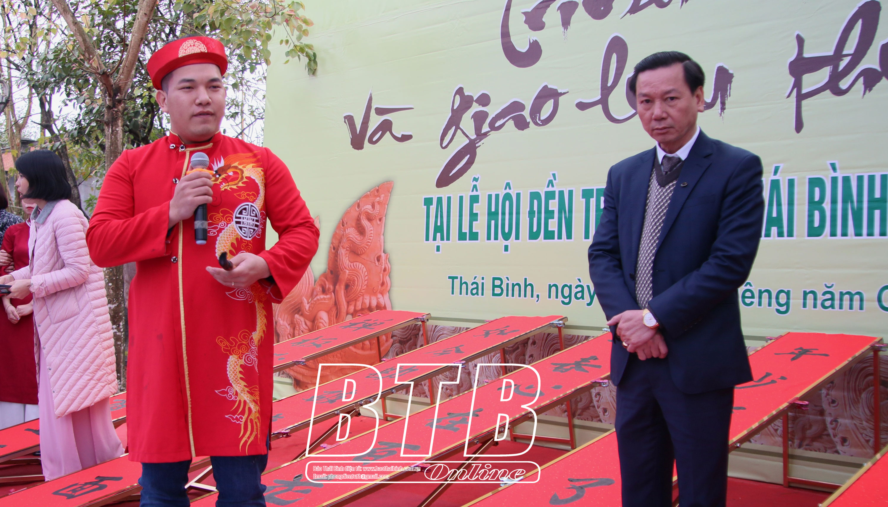 Trình diễn và giao lưu thư pháp tại lễ hội đền Trần