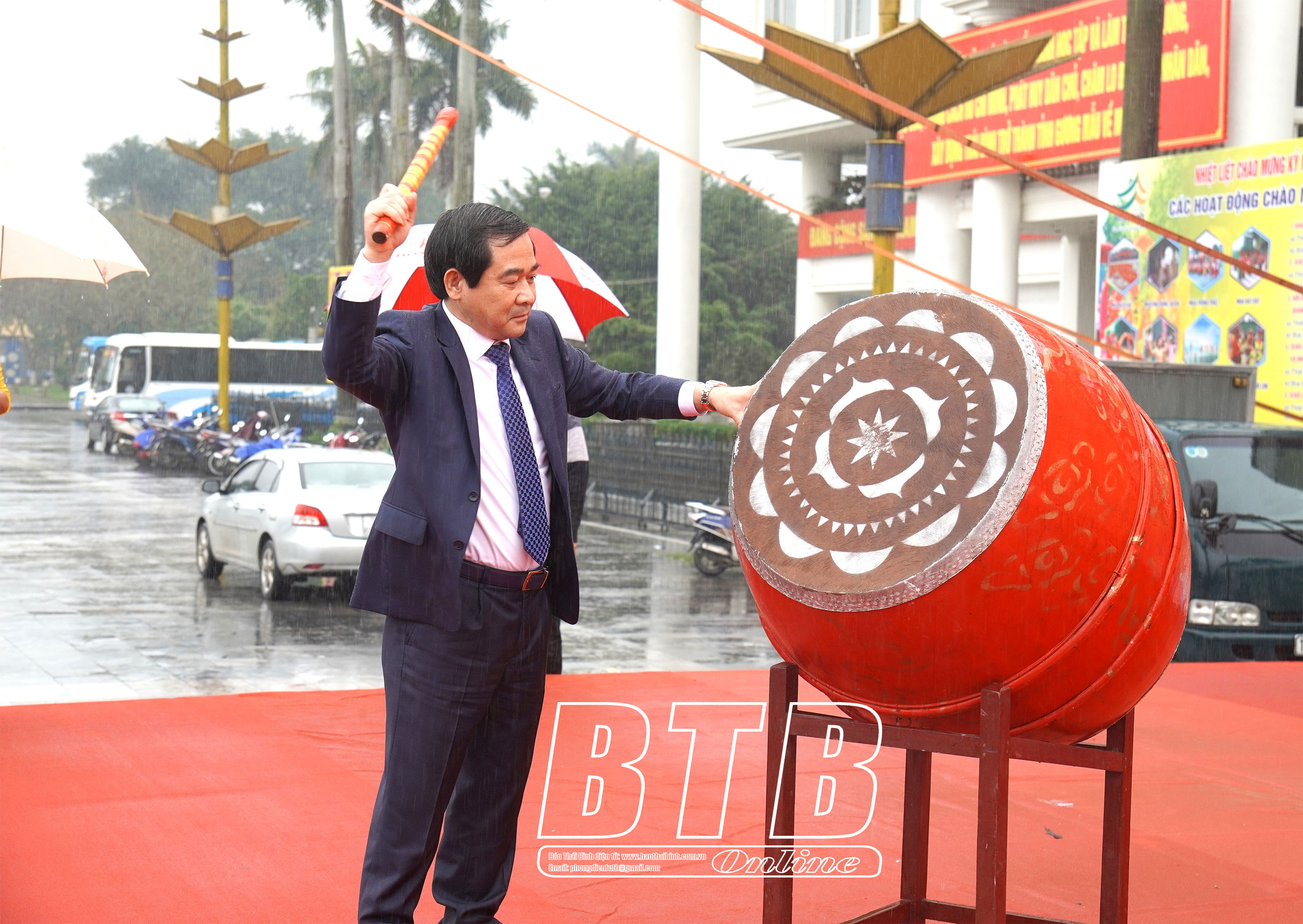 Tại buổi lễ, đồng chí Nguyễn Tiến Thành, Phó Bí thư thường trực Tỉnh ủy, Chủ tịch HĐND tỉnh đã đánh trống khai mạc ngày hội.