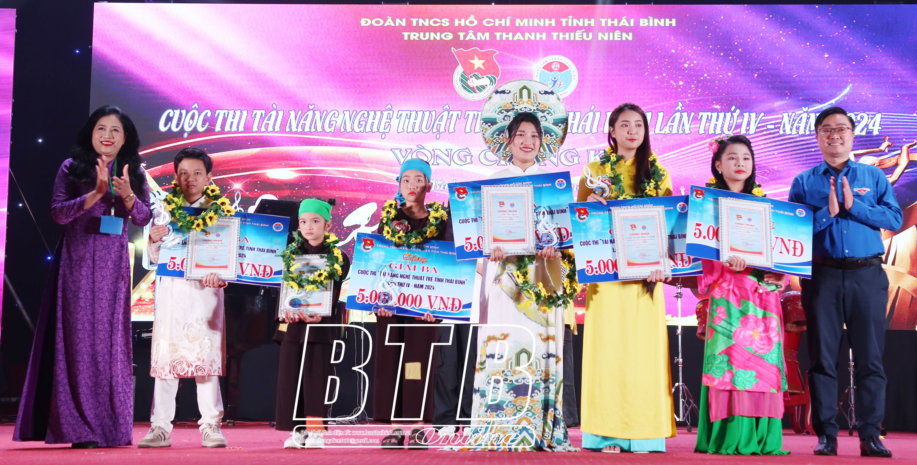 Các thí sinh nhận giải ba cuộc thi tài năng nghệ thuật trẻ tỉnh Thái Bình lần thứ IV.