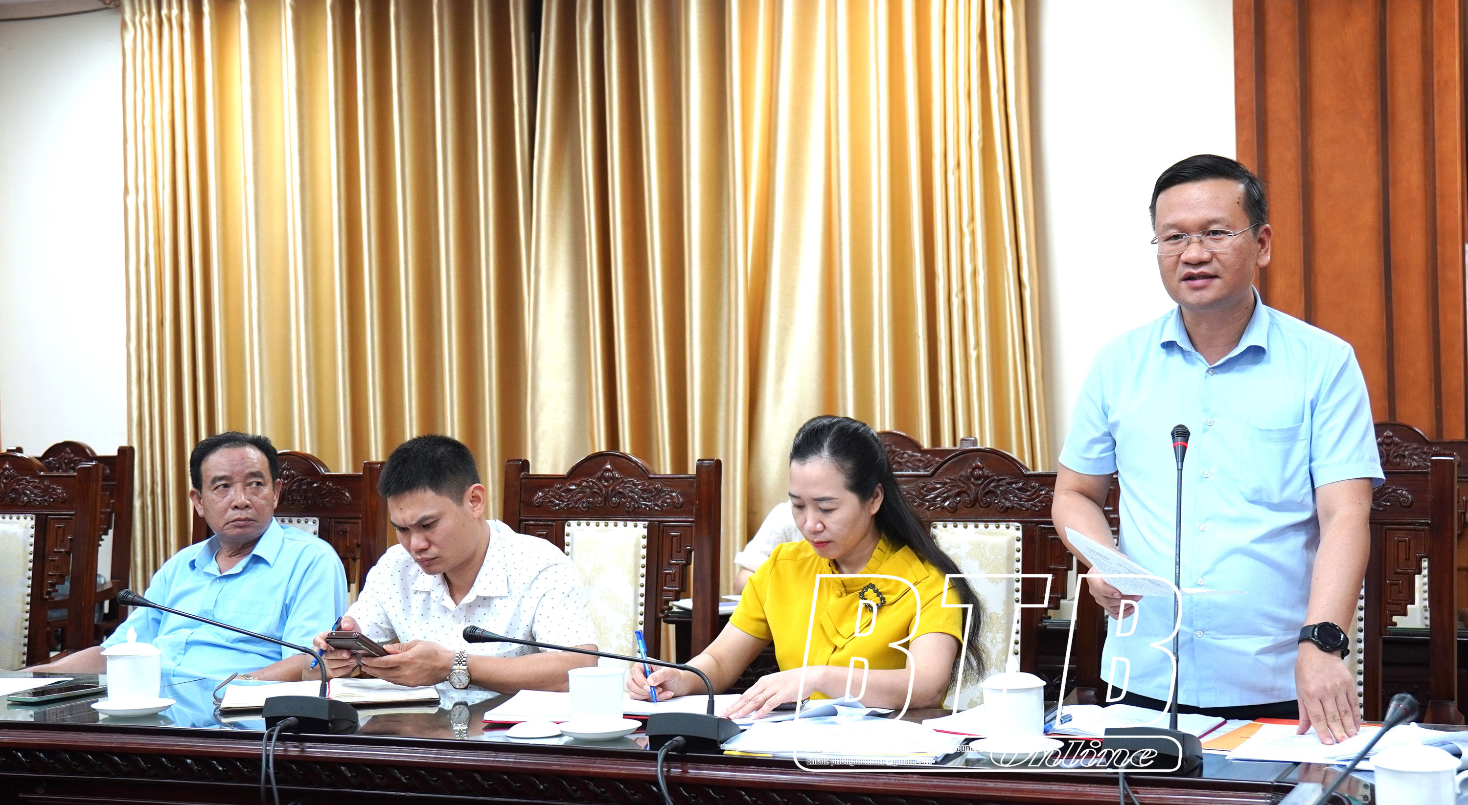 Đồng chí Phó Chủ tịch UBND tỉnh đề nghị Sở Văn hóa, Thể thao và Du lịch có báo cáo cụ thể về các bước tiếp theo trong việc trình UNESCO hồ sơ Nghệ thuật Chèo; xây dựng hồ sơ khoa học vinh danh danh nhân văn hóa Lê Quý Đôn để UBND tỉnh thống nhất chỉ đạo các ngành, địa phương liên quan nhằm bảo đảm tiến độ thời gian…