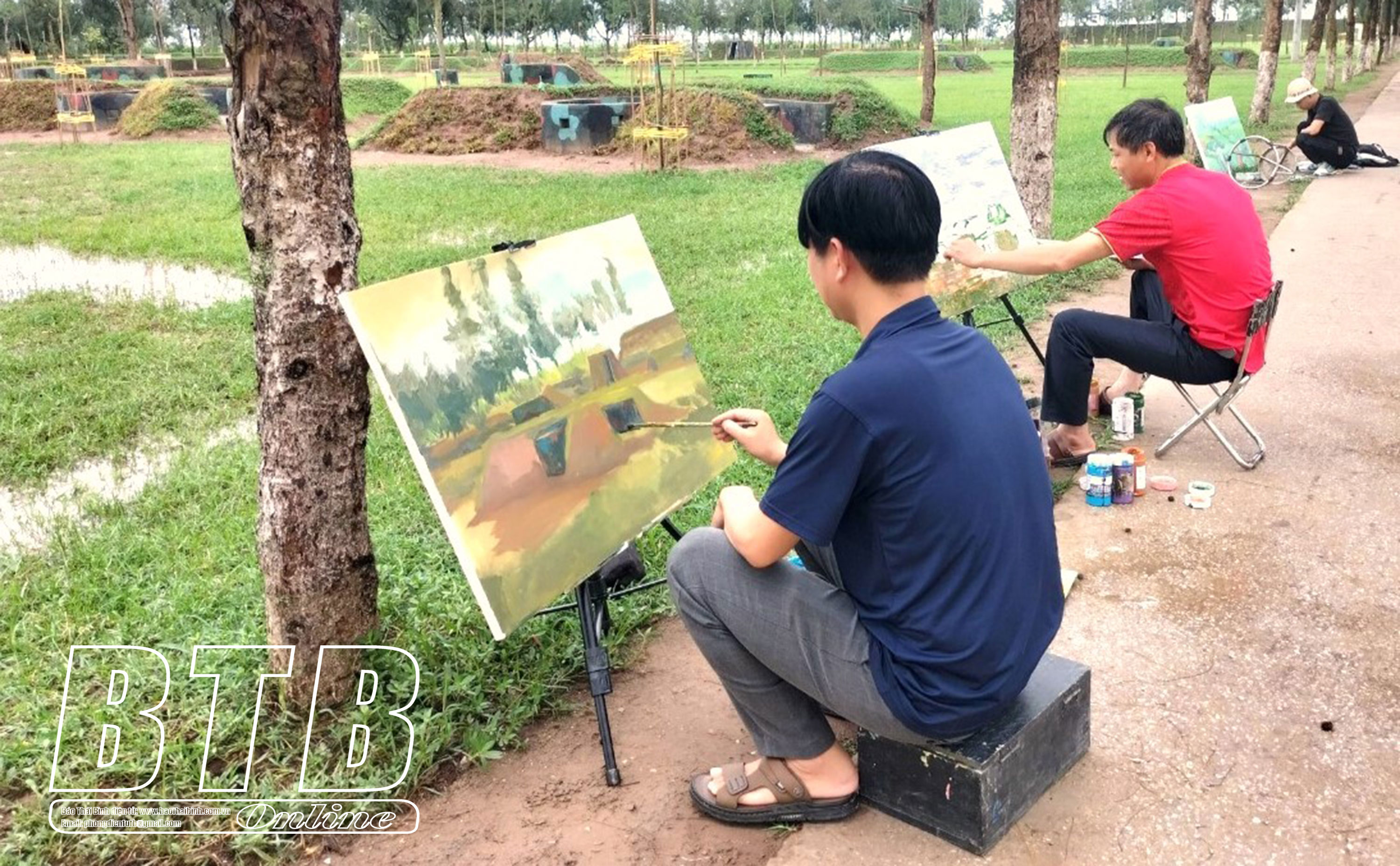 Các họa sĩ tham gia trại sáng tác do Hội Văn học Nghệ thuật tỉnh phối hợp với Trung đoàn 8, Sư đoàn 395, Quân khu 3 tổ chức.