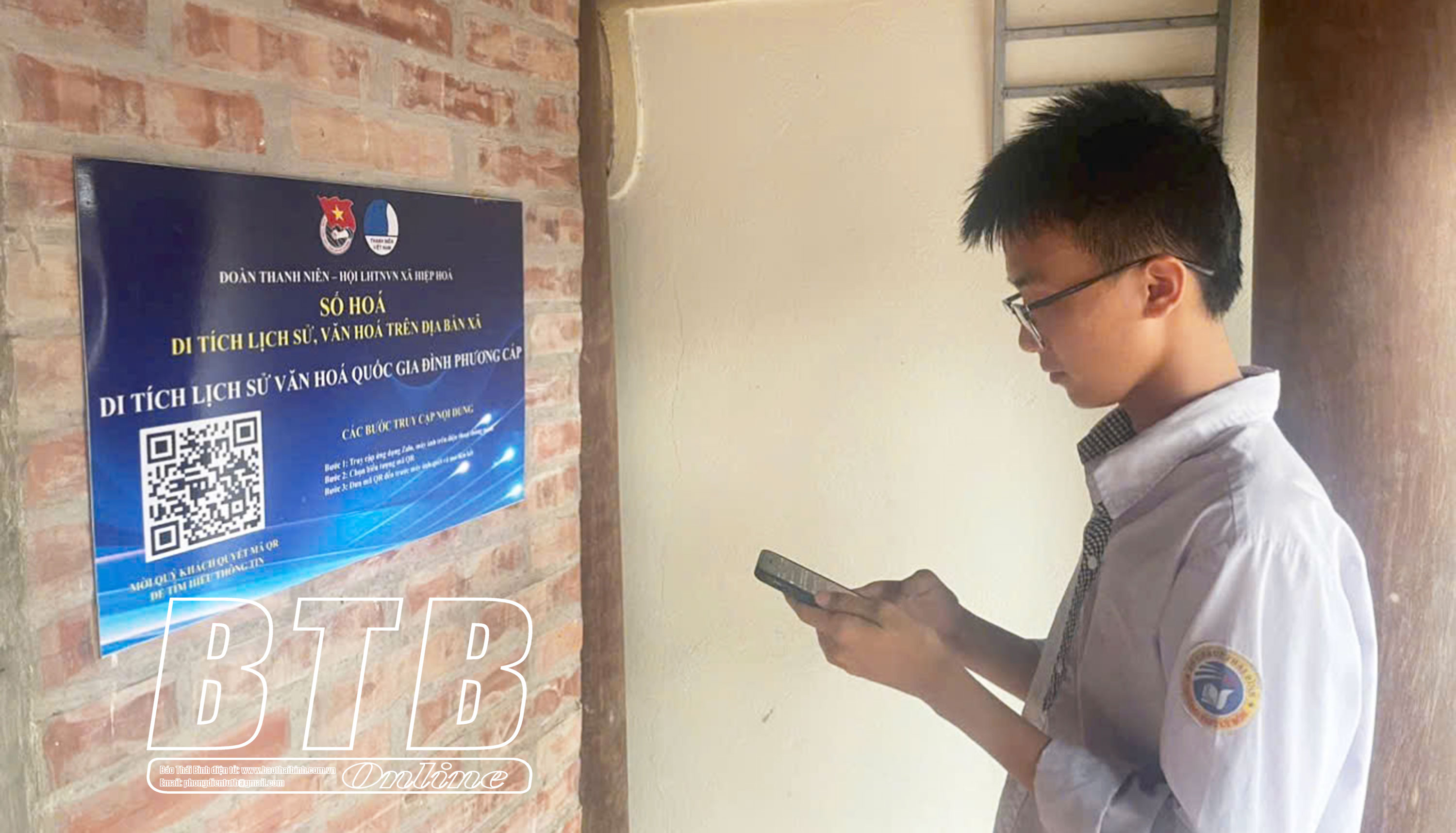 Học sinh tìm hiểu về đình Phương Cáp, xã Hiệp Hòa (Vũ Thư) qua mã QR.
