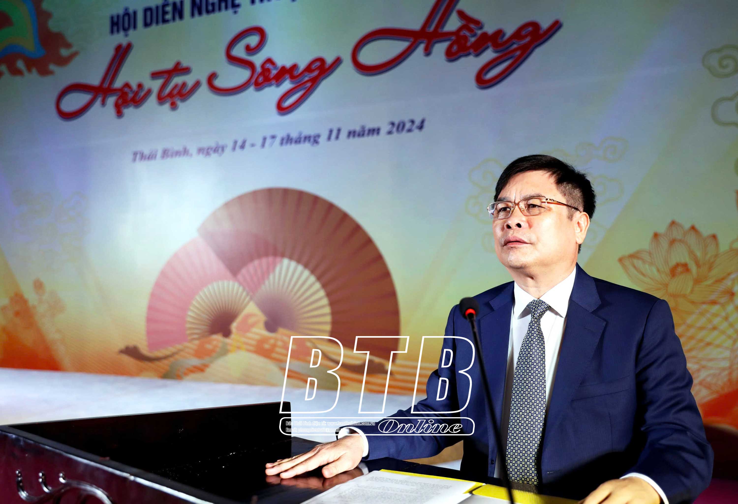 Phát biểu khai mạc hội diễn, đồng chí Phạm Văn Nghiêm, Tỉnh ủy viên, Phó Chủ tịch UBND tỉnh nhiệt liệt chào mừng các đoàn nghệ thuật tham gia hội diễn. Đồng chí nhấn mạnh: Là một tỉnh thuộc khu vực đồng bằng sông Hồng, từ xưa tới nay, Thái Bình vẫn được xem là một trong những “cái nôi” của nghệ thuật chèo. Chèo đã trở thành niềm tự hào của người dân quê lúa. Càng tự hào hơn khi nghệ thuật trình diễn dân gian chèo Thái Bình được đưa vào danh mục di sản văn hóa phi vật thể quốc gia; đồng thời, tỉnh Thái Bình đại diện cho 14 tỉnh, thành phố trong cả nước xây dựng và đã hoàn thiện hồ sơ nghệ thuật chèo đệ trình UNESCO ghi danh vào danh mục di sản văn hóa phi vật thể đại diện của nhân loại. Những năm qua, Tỉnh ủy, HĐND, UBND tỉnh luôn quan tâm lãnh đạo, chỉ đạo, ban hành nhiều cơ chế, chính sách đặc thù dành cho các nghệ sĩ, nghệ nhân trong việc phát huy, bảo tồn giá trị di sản văn hóa của dân tộc; nhiều đề án phát triển nghệ thuật chèo được triển khai trong các trường học, hàng trăm câu lạc bộ chèo được thành lập ở các xã, phường, thôn, tổ dân phố, cơ quan, đơn vị, tất cả đã tạo nên sức sống mãnh liệt của nghệ thuật chèo trong quần chúng nhân dân. Với ý nghĩa sâu sắc này, việc đăng cai tổ chức hội diễn nghệ thuật quần chúng Hội tụ sông Hồng tại tỉnh Thái Bình năm nay càng khẳng định thêm giá trị của nghệ thuật chèo trong xã hội đương đại.