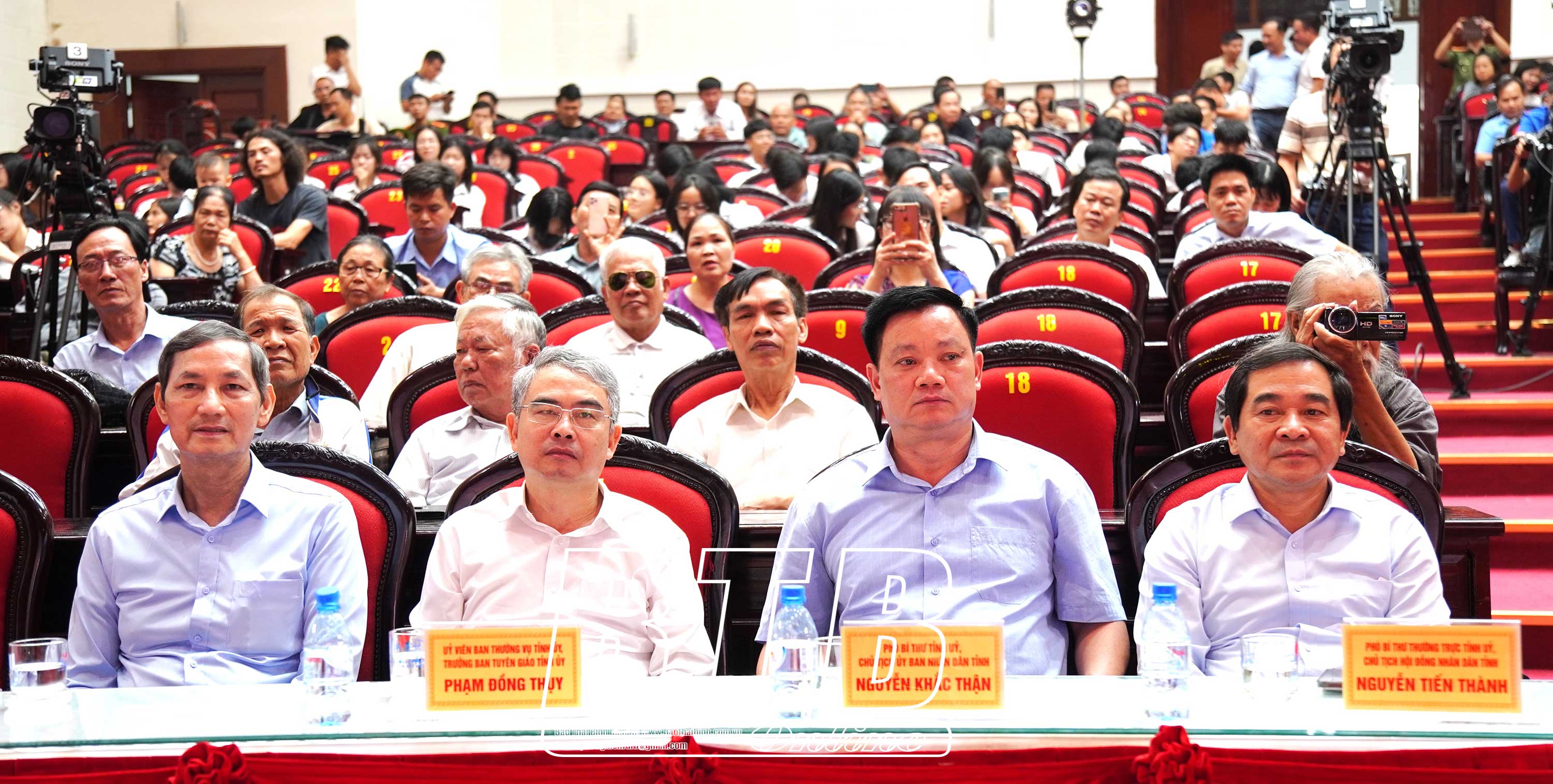 Các đồng chí: Nguyễn Tiến Thành, Phó Bí thư thường trực Tỉnh ủy, Chủ tịch HĐND tỉnh; Nguyễn Khắc Thận, Phó Bí thư Tỉnh ủy, Chủ tịch UBND tỉnh cùng các đại biểu dự chương trình.