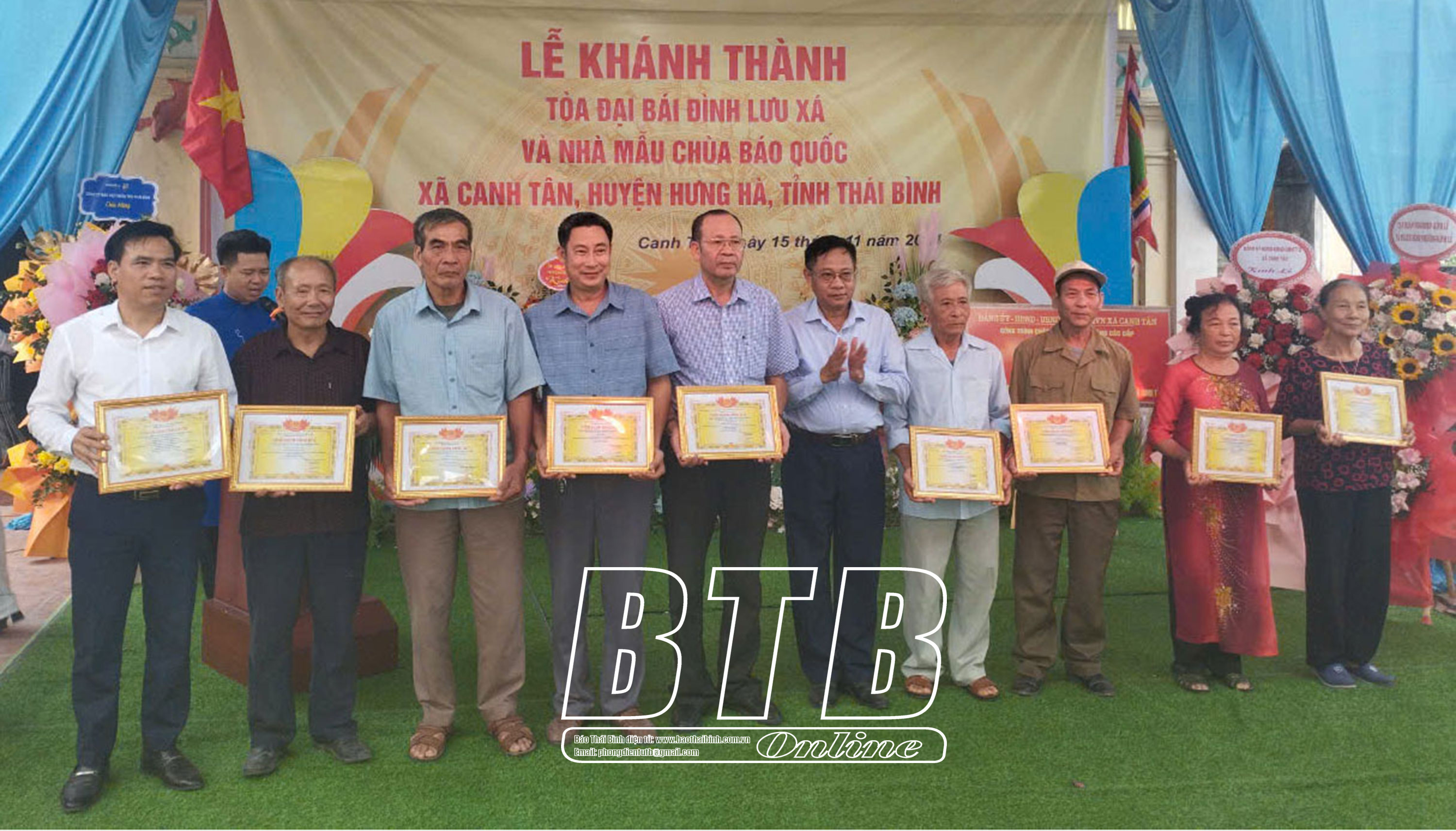 Xã Canh Tân vinh danh các tập thể, cá nhân có nhiều đóng góp xây dựng đình Lưu Xá và chùa Báo Quốc.