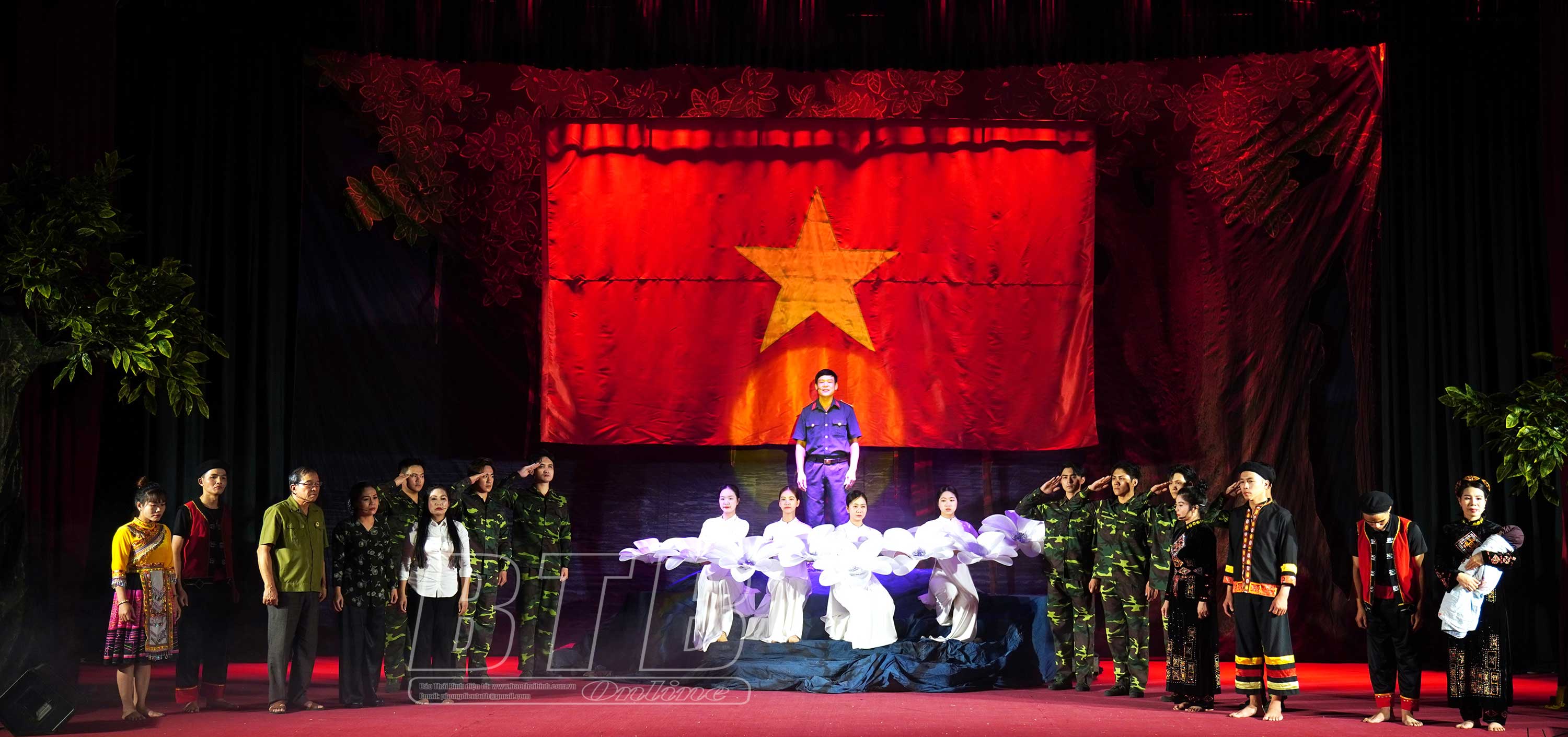 Tại lễ bế mạc hội diễn, đông đảo khán giả trong và ngoài tỉnh đã theo dõi vở diễn “Điểm tựa màu xanh” của đoàn nghệ thuật quần chúng thành phố Hải Phòng.