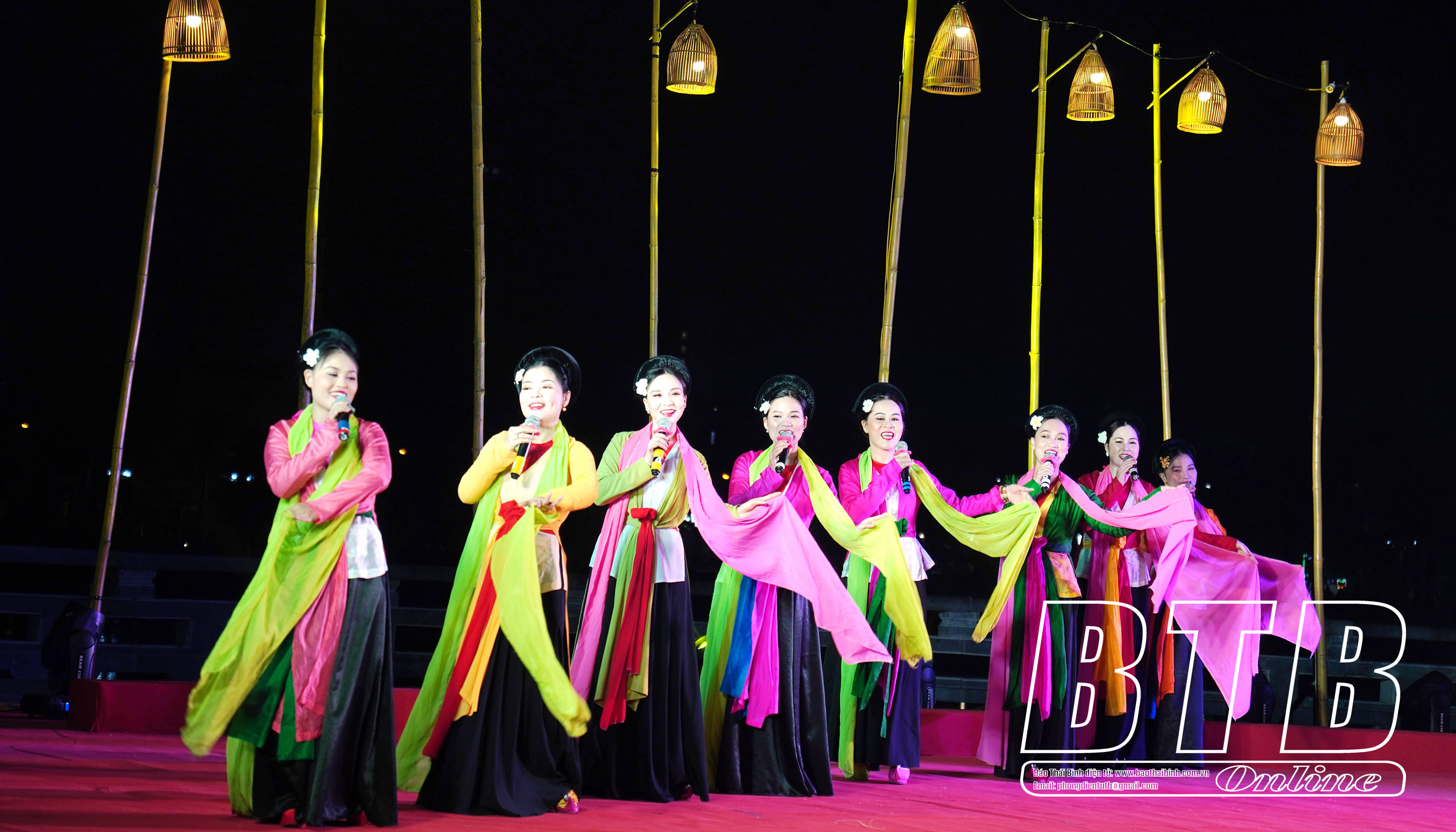 Nghệ sĩ Nhà hát Chèo Thái Bình biểu diễn làn điệu chèo truyền thống tại chương trình nghệ thuật.