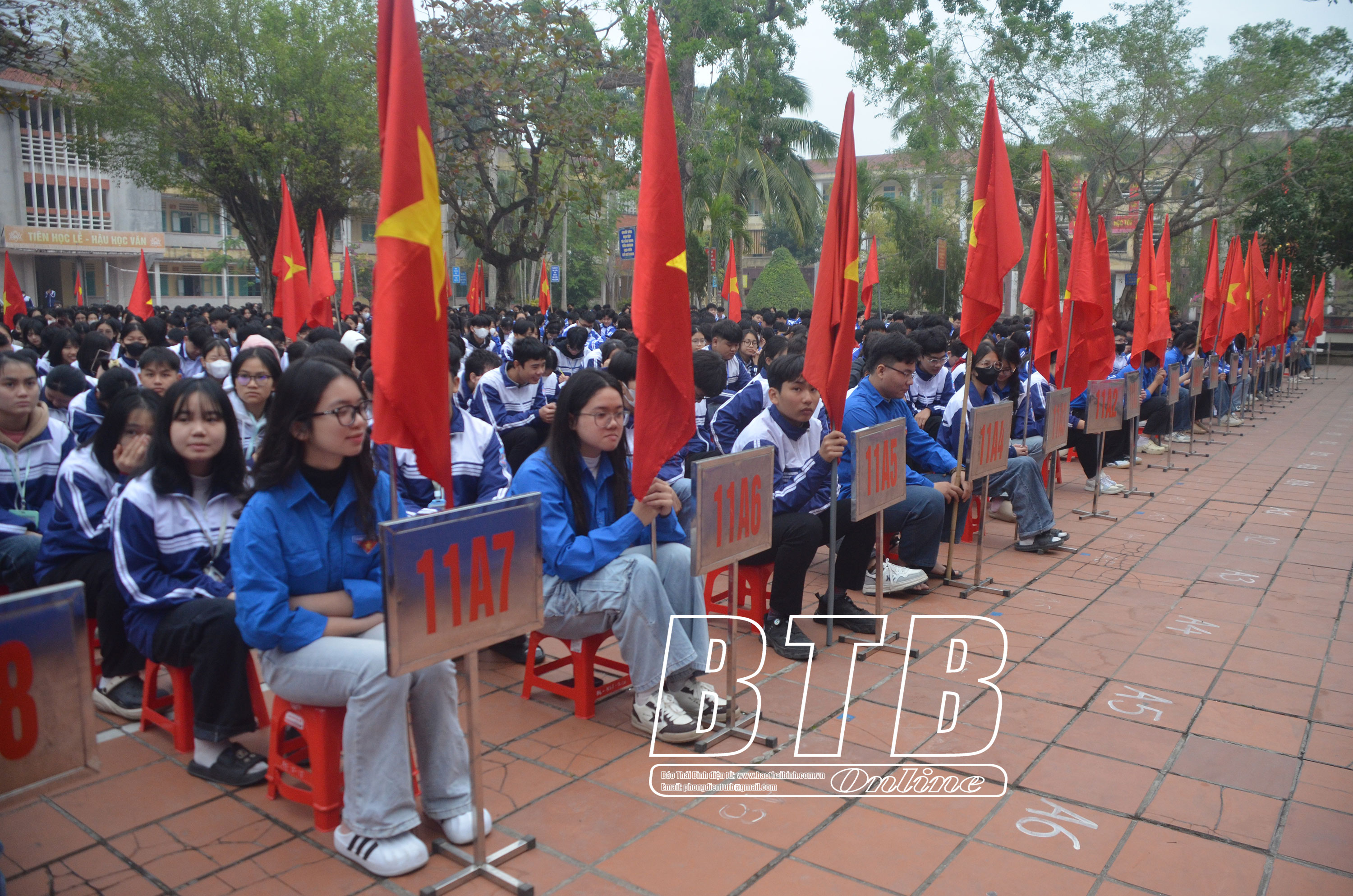 Gần 2.000 đoàn viên, thanh niên, học sinh Trường THPT Quỳnh Côi hưởng ứng cuộc thi.