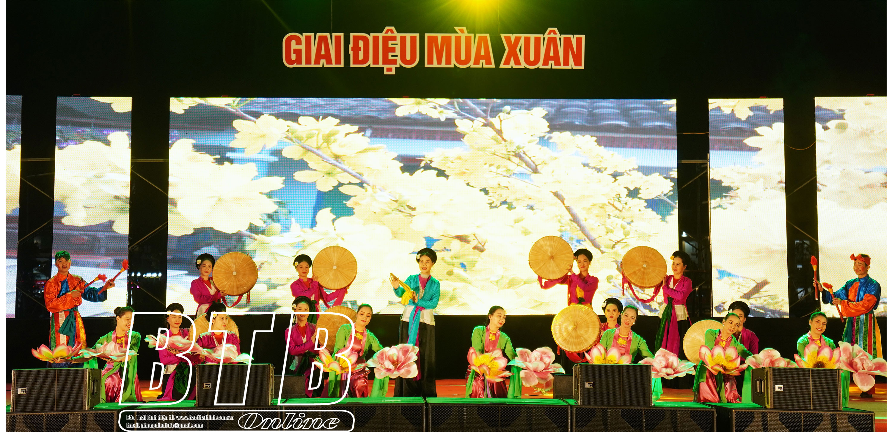 Chương trình diễn ra từ 21h30 – 24h do các nghệ sĩ Nhà hát Chèo Thái Bình thể hiện. Các tiết mục được dàn dựng công phu ở thể loại hát chèo, hát mới, hòa tấu dàn nhạc… với chủ đề mừng Đảng, mừng xuân, ca ngợi tình yêu quê hương, đất nước và con người Thái Bình. Qua phần trình diễn sinh động, giàu cảm xúc của hơn 50 nghệ sĩ cùng hệ thống âm thanh, ánh sáng hiện đại đã tạo nên niềm vui, khí thế trong thời khắc chuyển giao giữa năm cũ và năm mới cho các tầng lớp nhân dân.