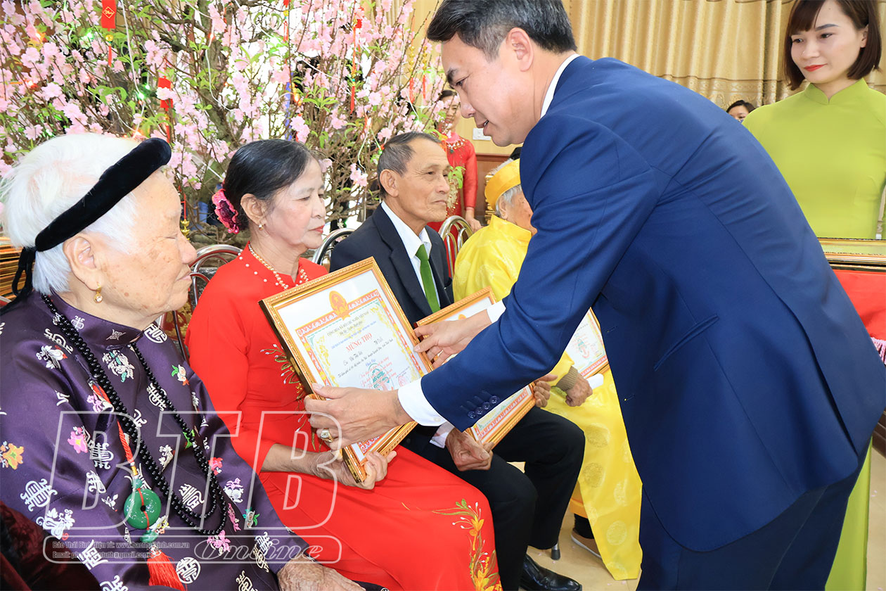Năm 2025, toàn tỉnh tổ chức mừng thọ, chúc thọ cho khoảng 58.000 NCT từ 70, 75, 80, 85, 90, 95, 100 và 100 tuổi trở lên. Các đồng chí lãnh đạo tỉnh, các huyện, thành phố trực tiếp đến thăm, trao thiếp mừng thọ và quà của Chủ tịch nước cho các cụ tròn 100 tuổi trên địa bàn. Bên cạnh việc tuyên truyền, vận động NCT thực hiện tốt việc văn minh trong chúc thọ, mừng thọ, nhiều địa phương tổ chức cho gia đình có người chúc thọ, mừng thọ ký cam kết thực hiện nếp sống văn minh, tiết kiệm.
