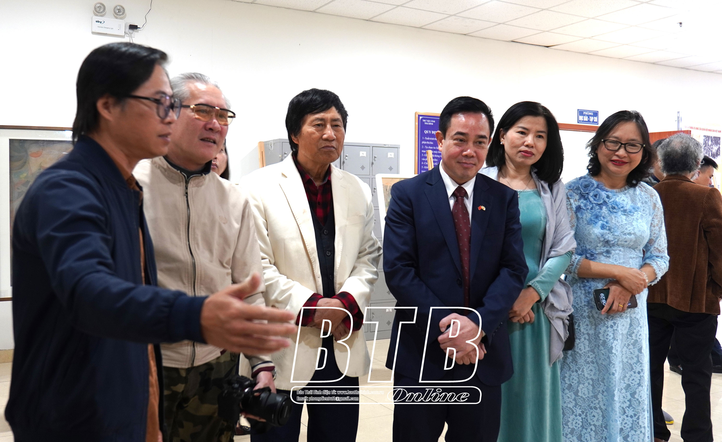 Các đại biểu nghe chia sẻ của họa sĩ về tác phẩm nghệ thuật trưng bày.