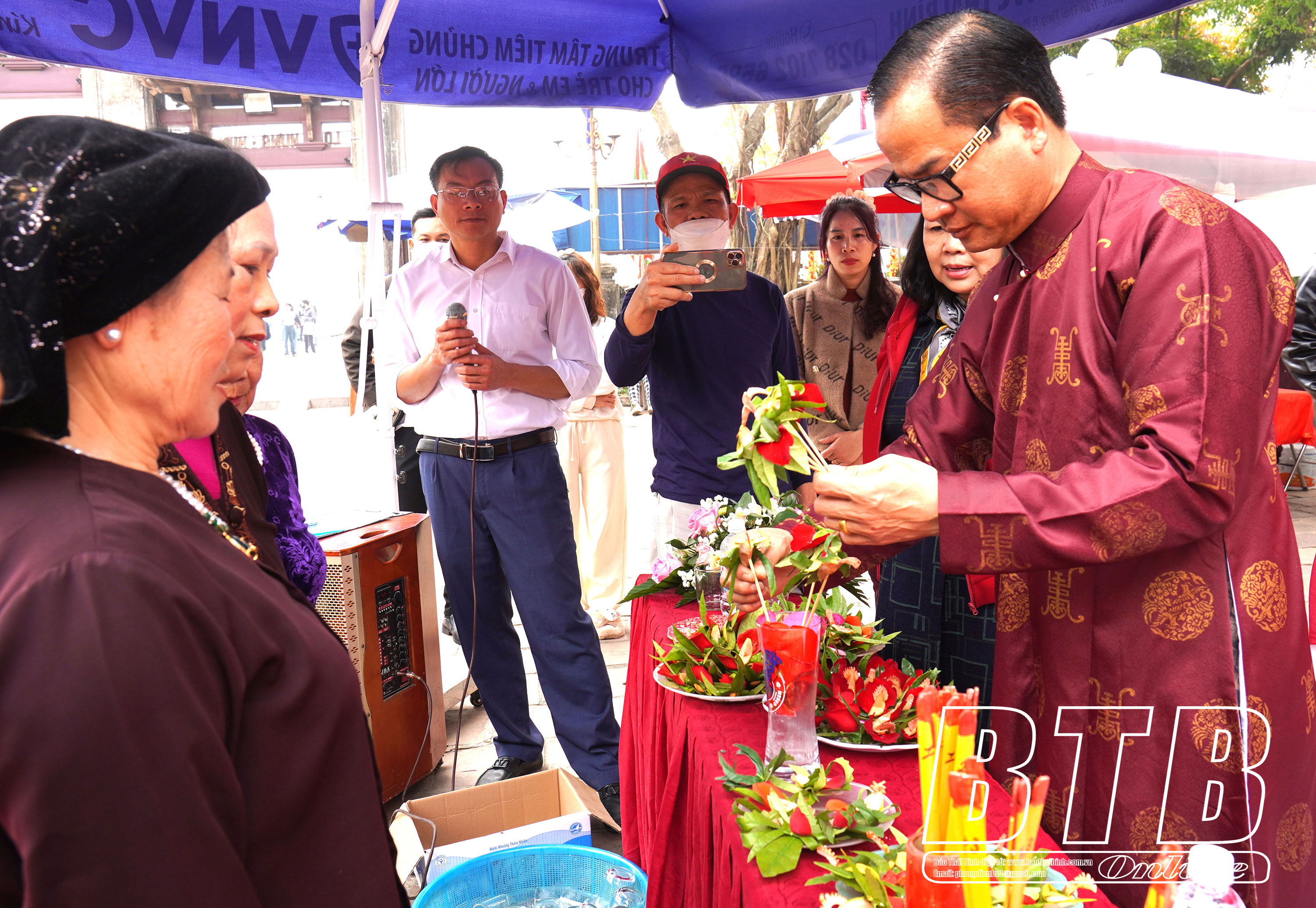 Các đội bê mâm trầu vào khu vực tế lễ dâng lên các vua Trần.