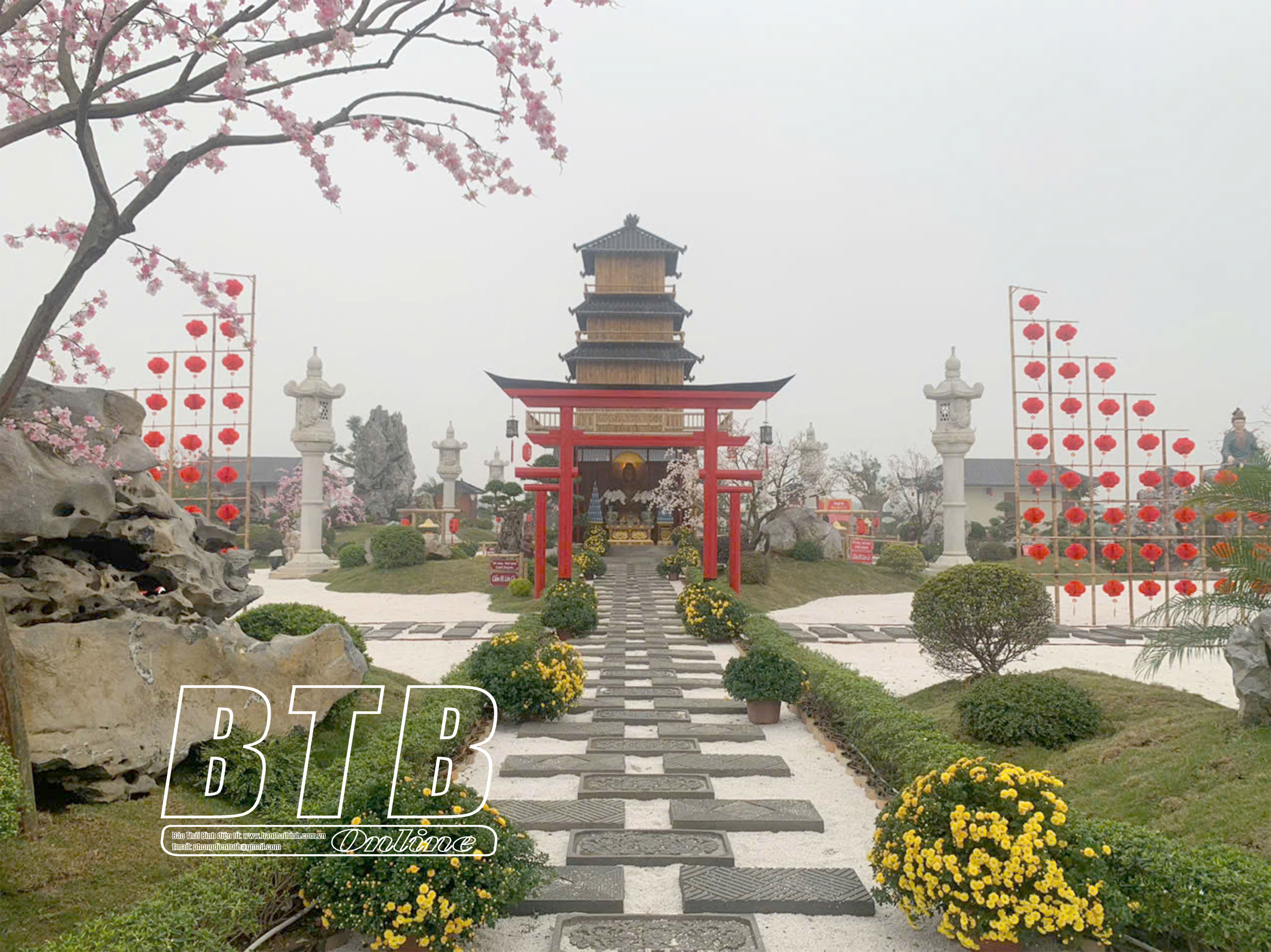 Chùa Giường được phục dựng mang phong cách giao thoa giữa kiến trúc Việt - Nhật.