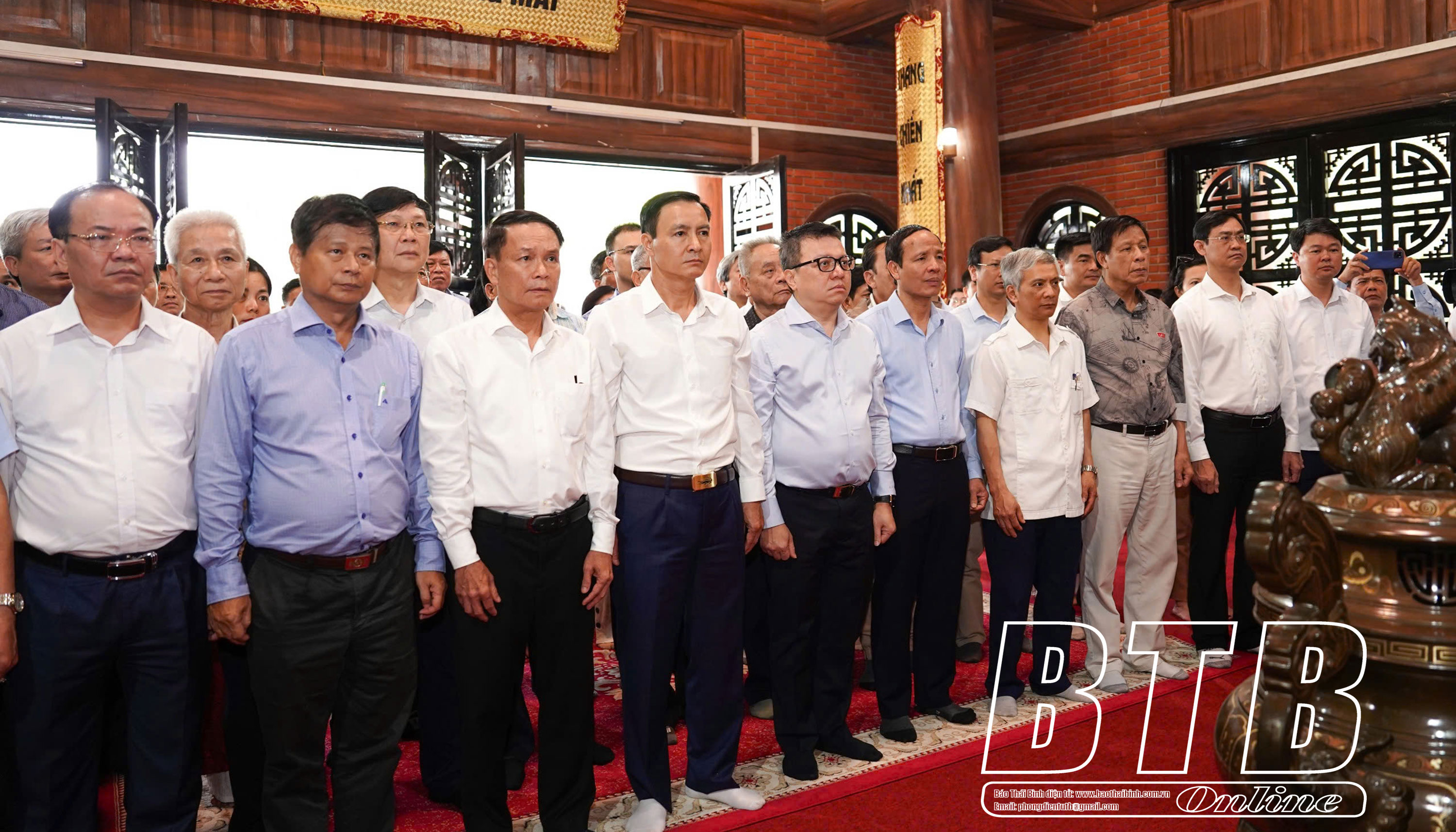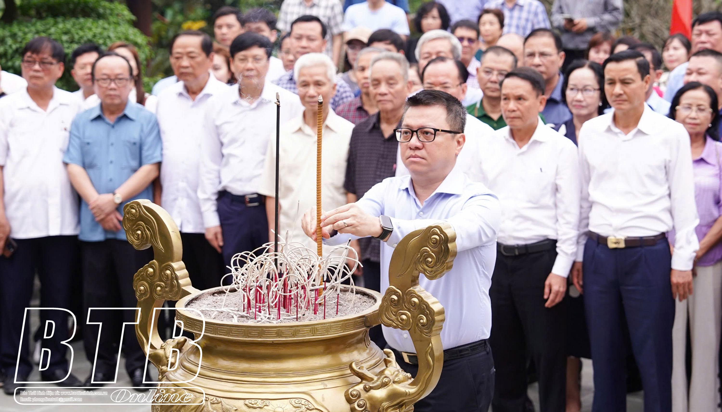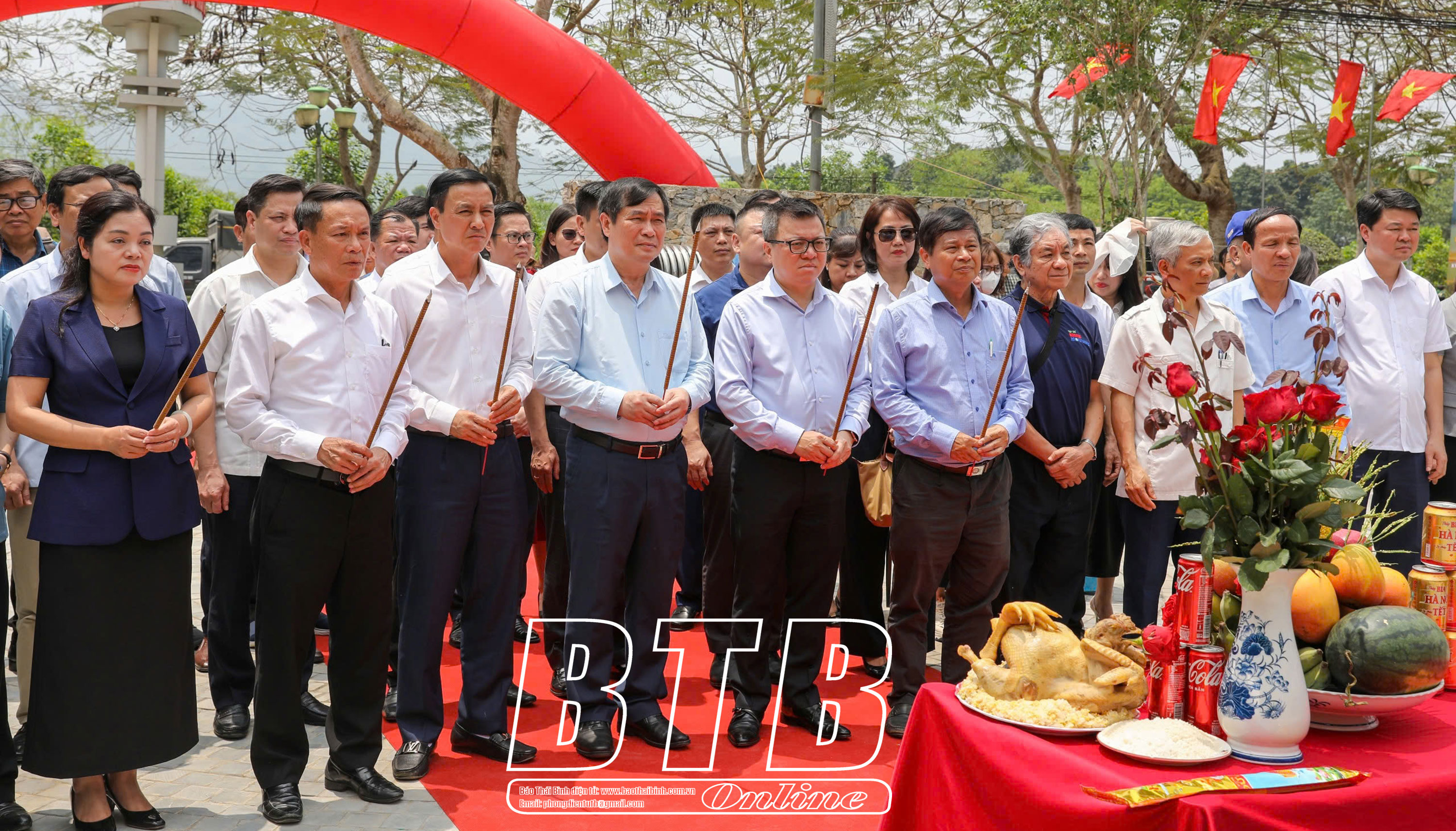 Đoàn dâng hương tại Di tích lịch sử quốc gia Địa điểm Trường dạy làm báo Huỳnh Thúc Kháng tại xã Tân Thái, ATK Đại Từ.