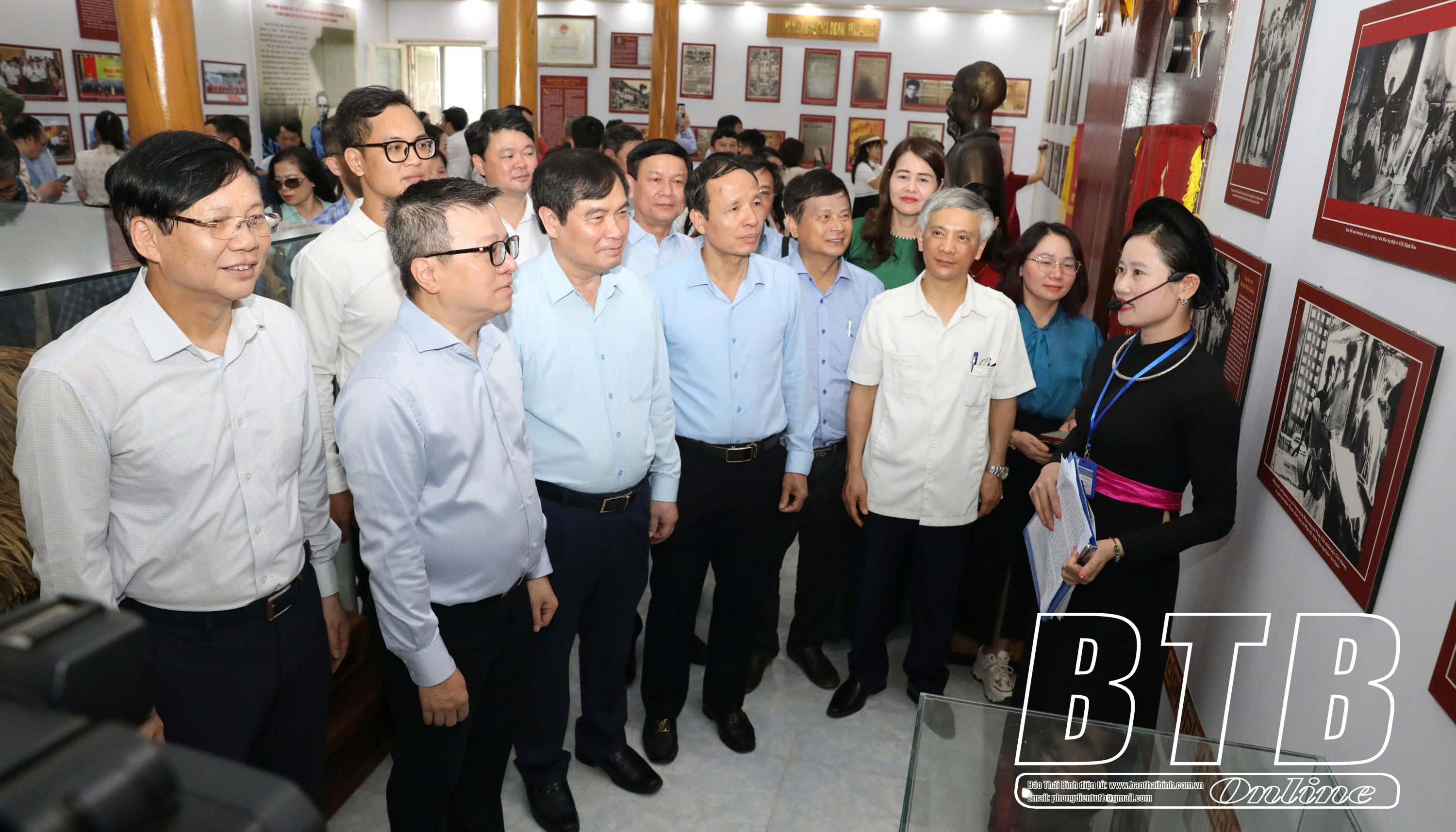 Đoàn tham quan không gian trưng bày tại Khu di tích nơi thành lập Hội Nhà báo Việt Nam. Đồng chí Lê Quốc Minh, Ủy viên Ban Chấp hành Trung ương Đảng, Tổng biên tập Báo Nhân Dân, Phó Trưởng ban Tuyên giáo và Dân vận Trung ương, Chủ tịch Hội Nhà báo Việt Nam cùng đoàn thăm Di tích lịch sử quốc gia nơi thành lập Hội Nhà báo Việt Nam tại xã Điềm Mặc, ATK Định Hóa.