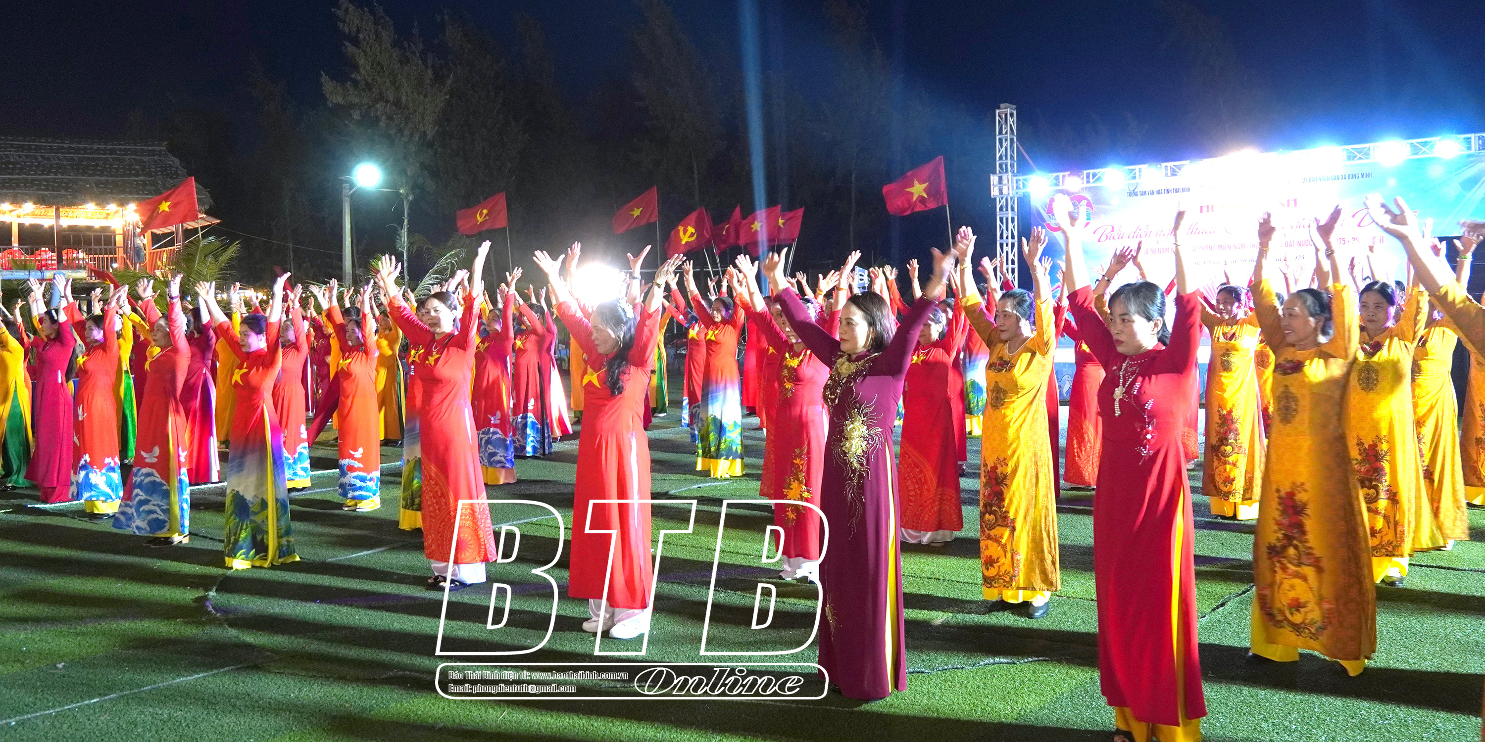 Ngoài ra, gần 500 hội viên đến từ 20 CLB dân vũ trên địa bàn huyện Tiền Hải đã tham gia đồng diễn và biểu diễn dân vũ với những ca khúc ca ngợi tình yêu quê hương, đất nước.