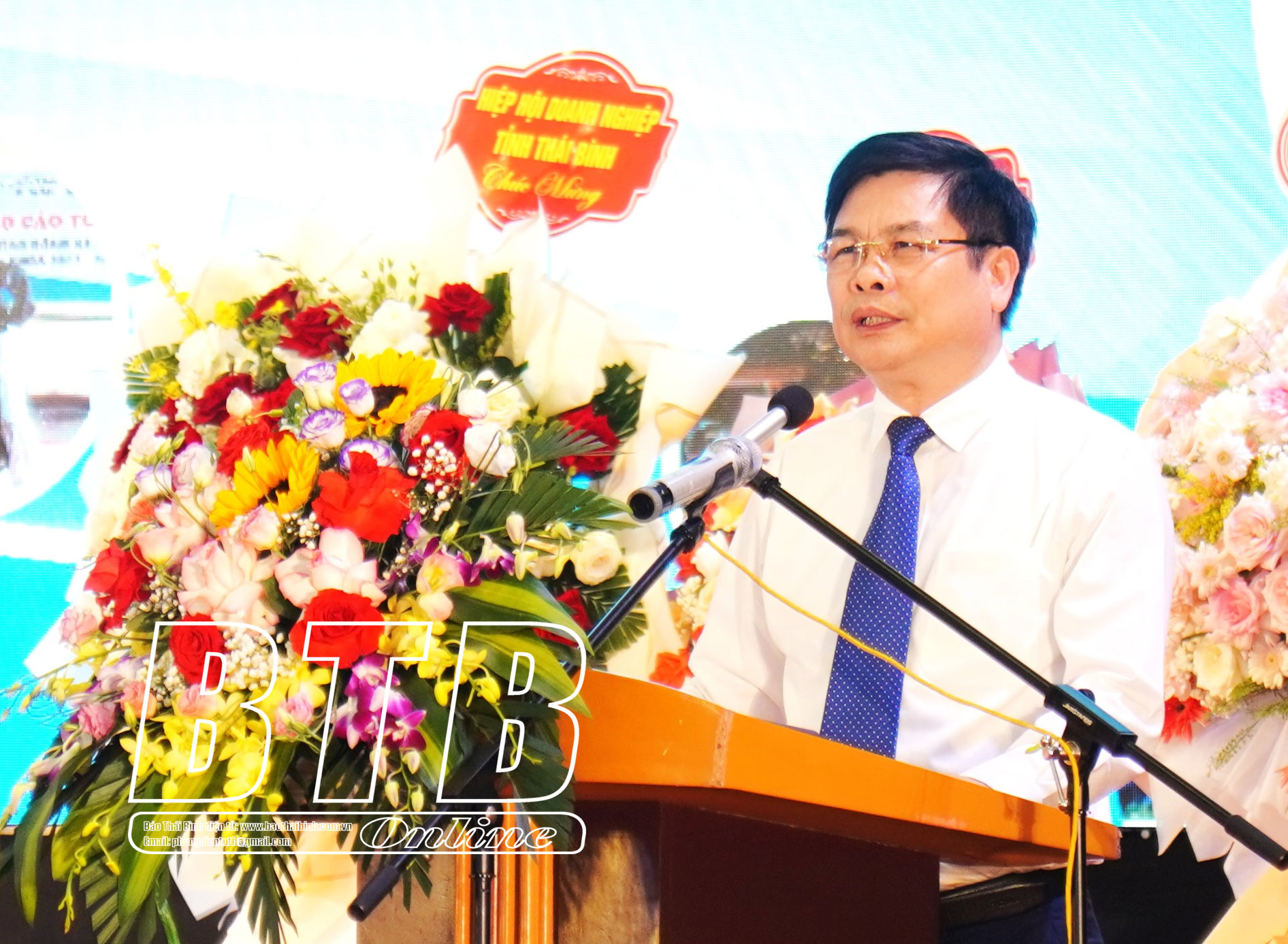 Đồng chí Đặng Thanh Giang, Ủy viên Ban Thường vụ Tỉnh ủy, Phó Chủ tịch thường trực HĐND tỉnh chúc mừng Trường Cao đẳng Văn hóa Nghệ thuật Thái Bình.
